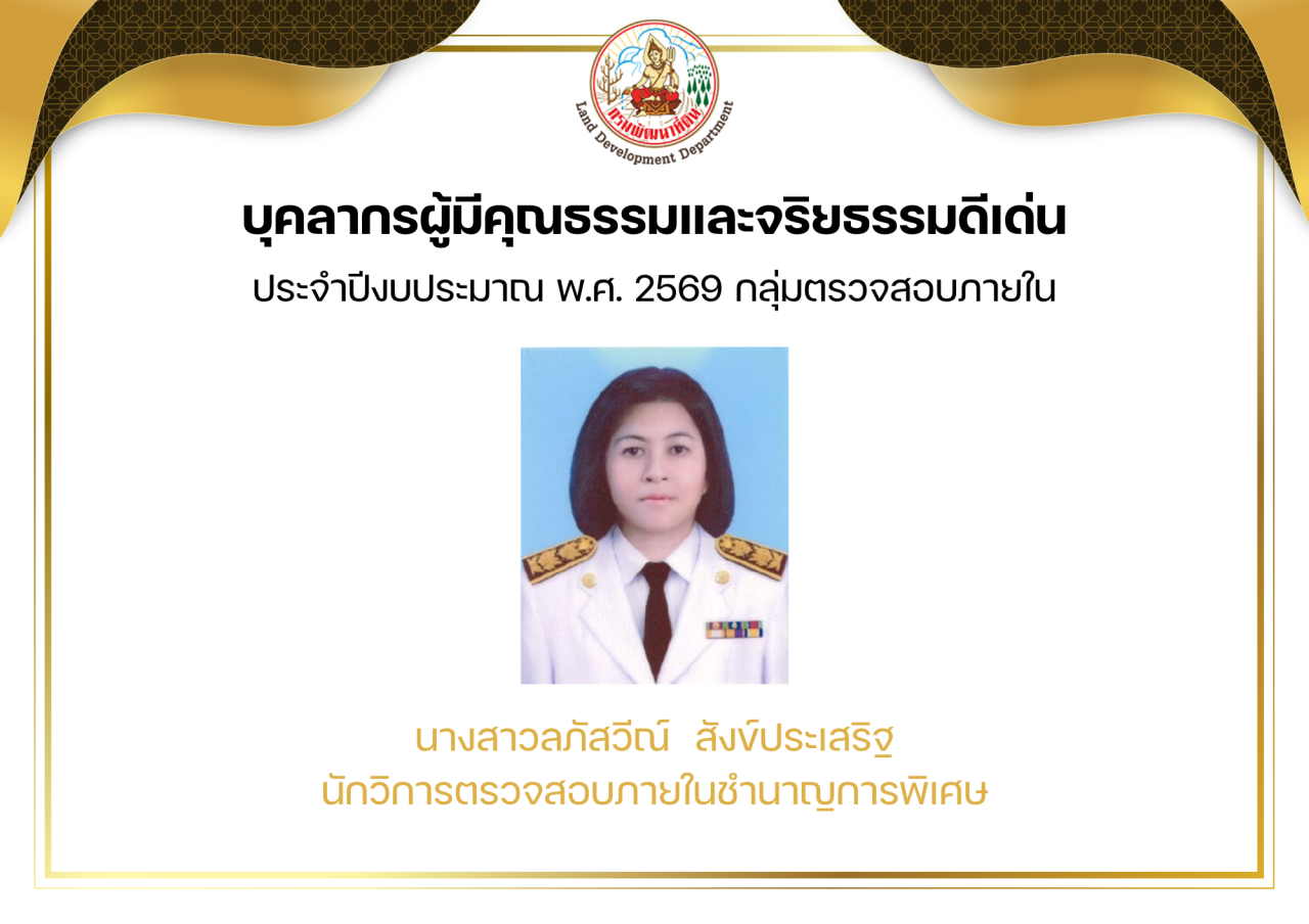 บุคลากรผู้มีคุณธรรม และจริยธรรมดีเด่น ประจำปีงบประมาณ พ.ศ. 2569 กลุ่มตรวจสอบภายใน