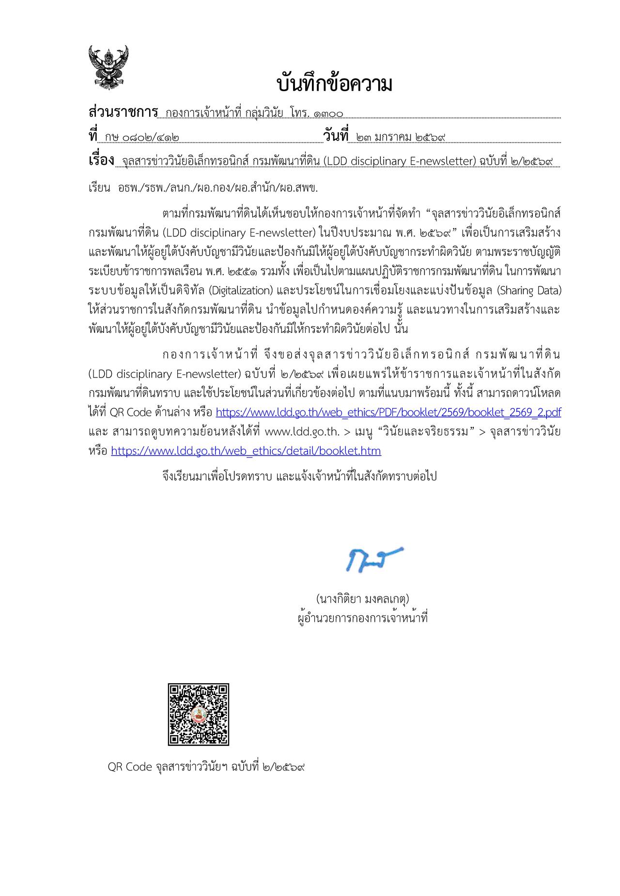 จุลสารข่ายอิเล็กทรอนิกส์ กรมพัฒนาที่ดิน (LDD disciplinary E-newsletter) ฉบับบที่ 2/2569