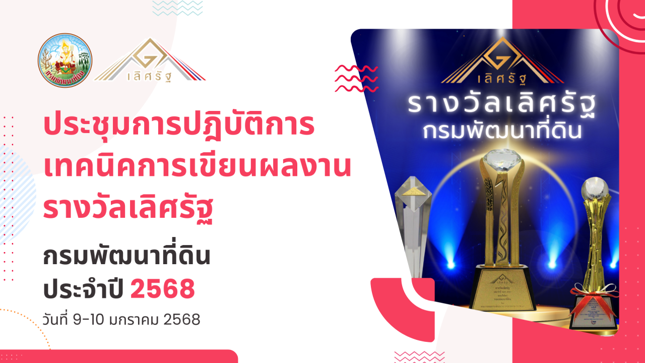 มกราคม พ.ศ. 2568 เวลา 09.00 น. กพร.พด.ได้จัดประชุมเชิงปฏิบัติการเพื่อเสริมสร้างความรู้ความเข้าใจแก่บุคลากรเกี่ยวกับเทคนิคการเขียนผลงานสมัครรางวัลเลิศรัฐ