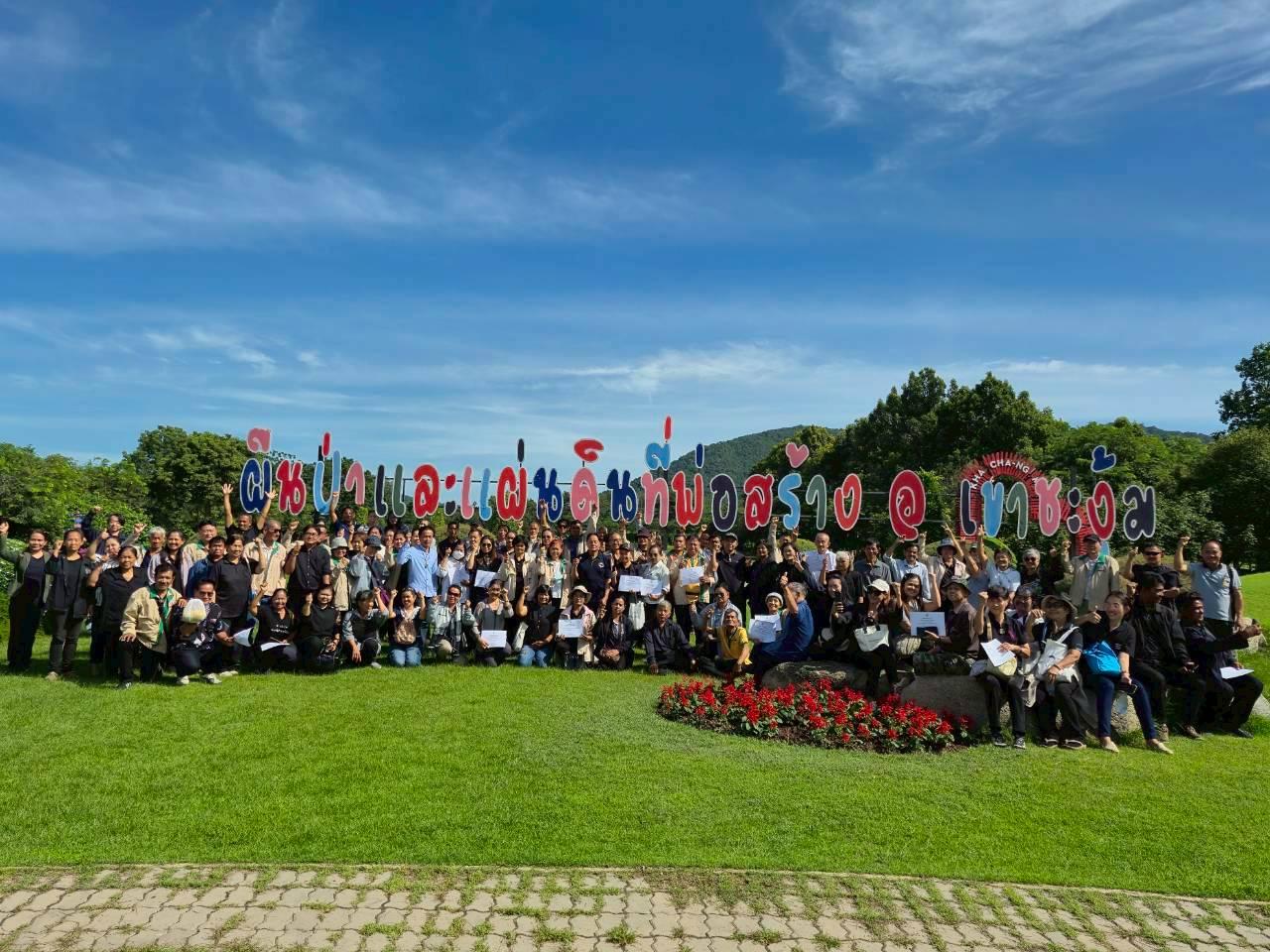 ศูนย์ศึกษาวิธีการฟื้นฟูที่ดินเสื่อมโทรมเขาชะงุ้ม อันเนื่องมาจากพระราชดำริ ให้การต้อนรับคณะหมอดินอาสาจังหวัดกาญจนบุรีและเจ้าหน้าที่สถานนีพัฒนาที่ดินกาญจนบุรี จำนวน 120 คน พร้อมทั้งนำคณะศึกษาเรียนรู้วิธีการพัฒนาฟื้นที่ดินเสื่อมโทรม เรียนรู้หลักปรัชญาของเศรษฐกิจพอเพียง การทำเกษตรทฤษฎีใหม่ การปรุงดิน การปลูกเมล่อน การเลี้ยงไส้เดือนดิน และนั่งรถรางเยี่ยมชมพื้นที่ และแปลงสาธิตต่างๆ ภายในศูนย์ฯ