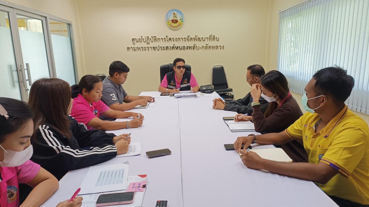 วันอังคารที่ 24 มิถุนายน 2568 นายทองหล่อ สุทธิสงค์ ผู้อำนวยการศูนย์ปฏิบัติการโครงการจัดพัฒนาที่ดินตามพระราชประสงค์หนองพลับ-กลัดหลวง พร้อมด้วยเจ้าหน้าที่ ศูนย์โครงการฯ หนองพลับ - กลัดหลวง ประชุมเตรียมข้อมูลและวางแผนการประชุมคณะทำงานเฉพาะกิจแก้ไขปัญหาการถือครองและใช้ประโยชน์ที่ดินโครงการจัดพัฒนาที่ดินตามพระราชประสงค์หนองพลับ – กลัดหลวง อำเภอหัวหิน จังหวัดประจวบคีรีขันธ์ อำเภอท่ายาง และอำเภอชะอำ จังหวัดเพชรบุรี ณ ห้องประชุมศูนย์ปฏิบัติการโครงการจัดพัฒนาที่ดินตามพระราชประสงค์หนองพลับ-กลัดหลวง อำเภอหัวหิน จังหวัดประจวบคีรีขันธ์