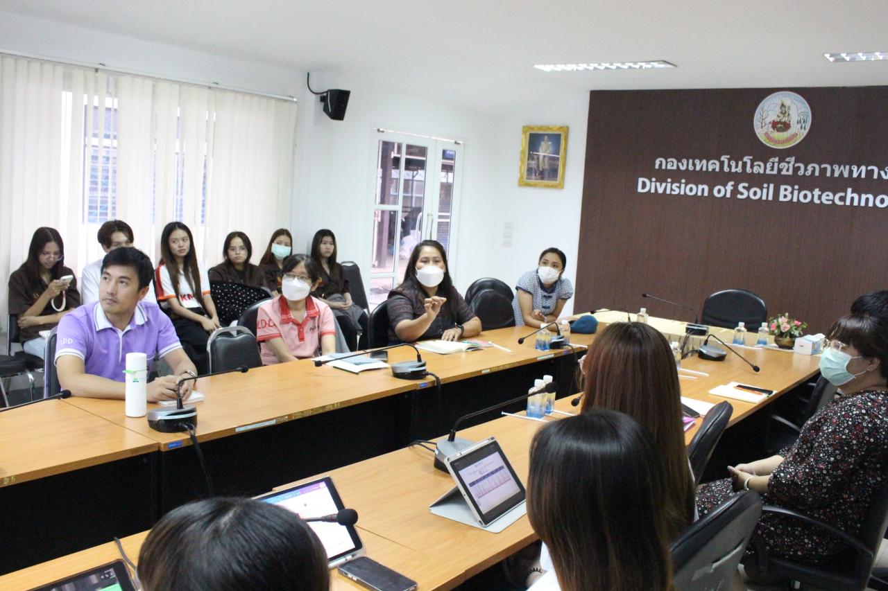 วันที่ 10 มิถุนายน 2568 เวลา 13.00 น. นายอธิวัฒน์ สิทธิภิญญาพัฒน์ ผู้อำนวยการกองเทคโนโลยีชีวภาพ มอบหมายให้ ผอ.กลุ่มฯ และเจ้าหน้าที่ ของกองเทคโนโลยีชีวภาพทางดิน ร่วมรับฟังนิสิตและนักศึกษาฝึกงาน นำเสนอโครงการศึกษาปัญหาเฉพาะเกี่ยวกับการศึกษาชนิดและปริมาณของจุลินทรีย์ในดิน พื้นที่ป่า นา บ่อ ในจังหวัดขอนแก่น เพื่อนำความรู้และการปฏิบัติงานไปใช้ประกอบการทำงาน โดยมี 1. นางสาวนบชนก จันทวงศ์ 2. นางสาวปวีณา ยศบุตร 3. นางสาวกนกนภัส ขงวน นิสิตฝึกงาน จากวิทยาศาสตรบัณฑิต สาขาจุลชีววิทยา มหาวิทยาลัยเกษตรศาสตร์ วิทยาเขตกำแพงแสน เป็นผู้นำเสนอ รายงานการฝึกงาน ณ ห้องประชุมกองเทคโนโลยีชีวภาพทางดิน