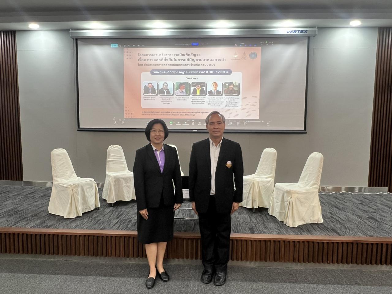 วันพฤหัสบดีที่ 17 กรกฎาคม 2568 เวลา 08.30 น. เป็นต้นไป นายอธิวัฒน์ สิทธิภิญญาพัฒน์ ผู้อำนวยการกองเทคโนโลยีชีวภาพทางดิน พร้อมด้วย นางจันจิรา แสงสีเหลือง รักษาการผู้เชี่ยวชาญด้านบำรุงดินด้วยอินทรียวัตถุ กองเทคโนโลยีชีวภาพทางดิน กรมพัฒนาที่ดิน ร่วมการเสวนาวิชาการ เรื่อง ทางออกที่ยั่งยืนในการแก้ปัญหาปลาหมอคางดำ ณห้องประชุมปลานิลจิตรลดา ชั้น 1 อาคารจรัลธาดา กรรณสูตกรมประมง และประชุมผ่านระบบการประชุมอิเล็กทรอนิกส์ (Zoom Cloud Meeting)