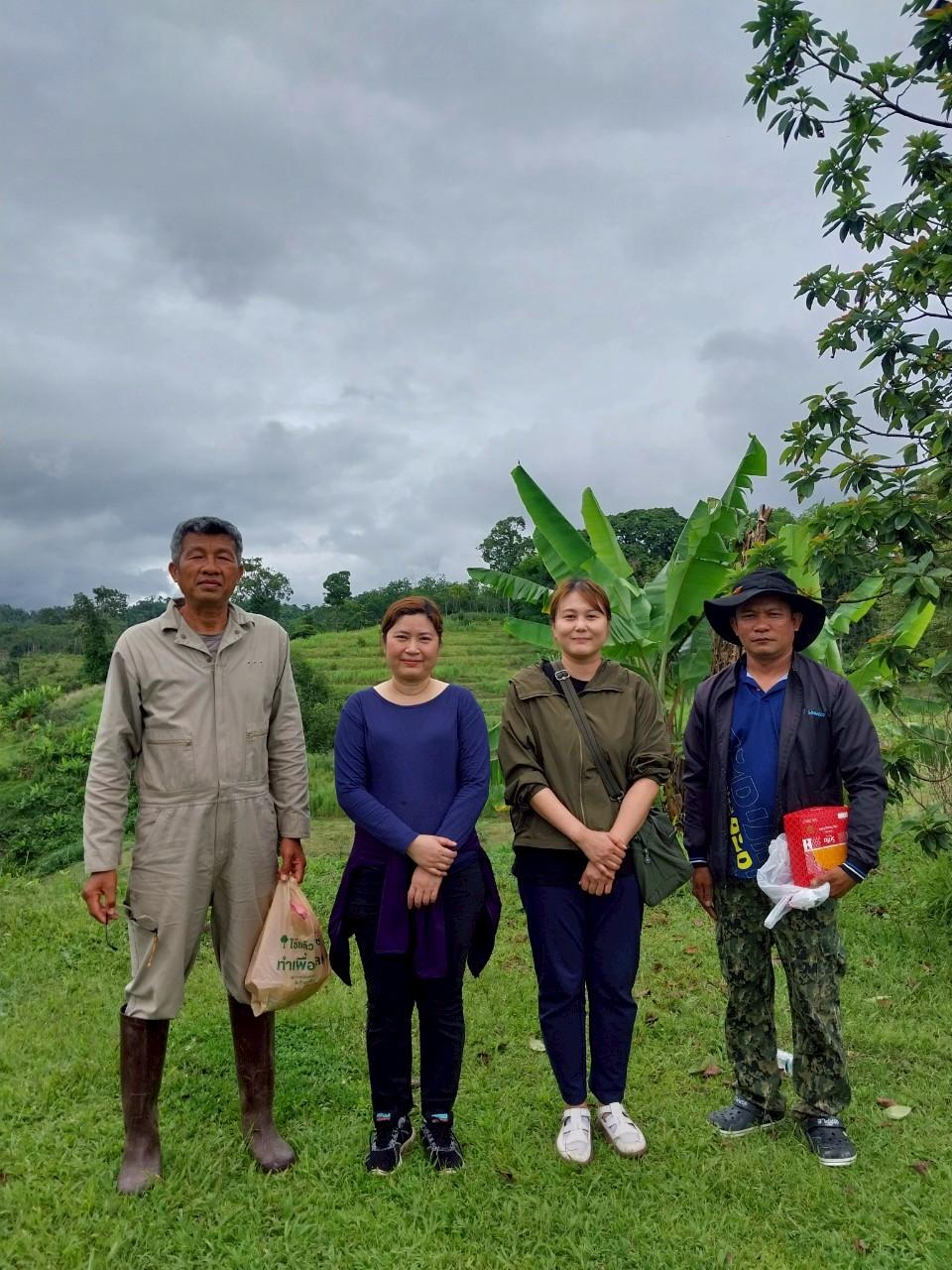 ✨นางสาวจารุวรรณ เฮียงมะณี นักวิชาการเกษตรชำนาญการ และนางสาวศศิรินทร์ ศรีสมเขียว นักวิชาการเกษตรชำนาญการพิเศษ กลุ่มวิจัยและพัฒนาการอนุรักษ์ดินและน้ำเพื่อการเกษตร กวจ. เข้าพบ นายสุนทร วันทอง ผู้ใหญ่บ้าน และหมอดินอาสาประจำหมู่บ้าน หมู่ 6 ทุ่งนางครวญ ตำบลชะแล อำเภอทองผาภูมิ จังหวัดกาญจนบุรี เพื่อพูดคุยเรื่องการจัดประชุมชี้แจงการดำเนินการวิจัยในท้องที่บ้านทุ่งนางครวญให้กับเกษตรกรที่ได้รับการจัดระบบอนุรักษ์ดินและน้ำ พร้อมทั้งเก็บตัวอย่างดินก่อนการทดลองในพื้นที่สวนทุเรียนของนายวุฒิชัย เก่งนาวา เกษตรกรผู้เข้าร่วมวิจัย และได้หารือเรื่องการจัดเตรียมแปลงทดลองและการดำเนินการวิจัย