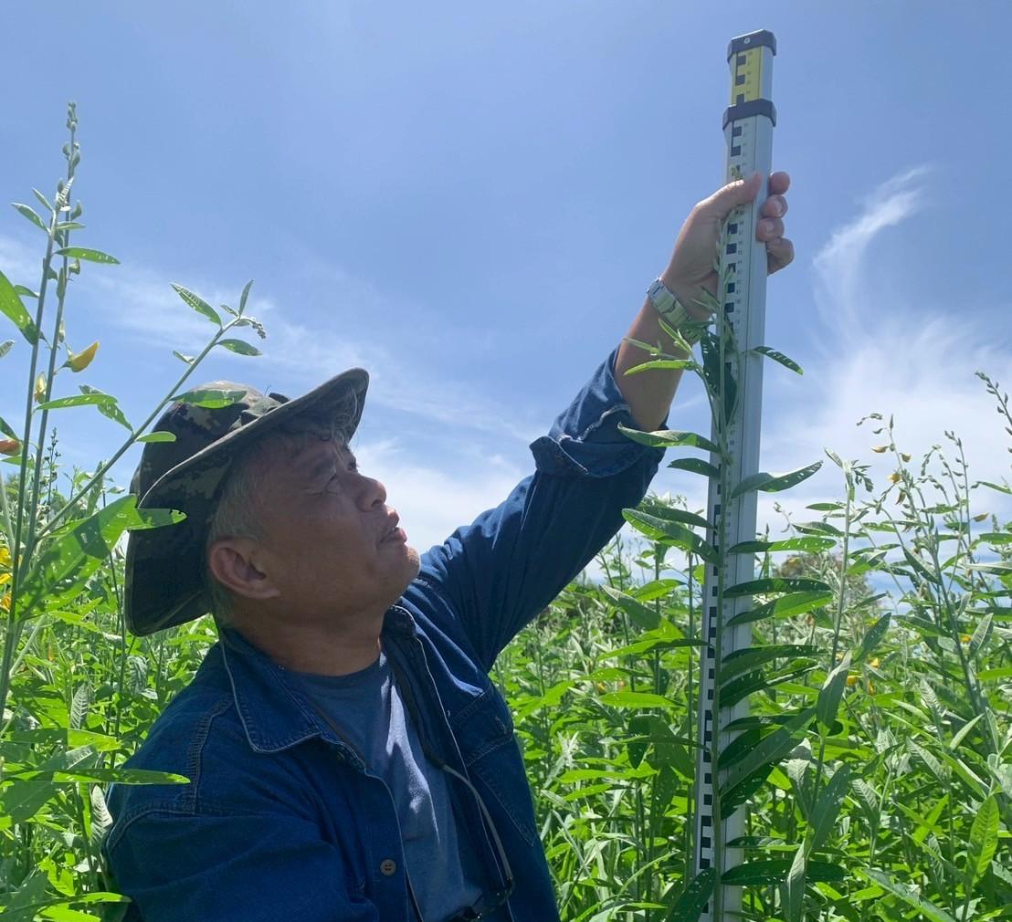 🎯 ดำเนินการโครงการวิจัยเรื่อง การพัฒนาประสิทธิภาพการใช้ปอเทืองเพื่อปรับปรุงบำรุงดิน และลดก๊าซเรือนกระจกในระบบการปลูกข้าวโพดหวาน โดยได้ทำการสุ่มเก็บตัวอย่างต้นปอเทือง นำมาวัดความสูง ชั่งน้ำหนักเพื่อติดตามผลการเจริญเติบโตของปอเทือง และบันทึกข้อมูลตามตำรับการทดลองในแปลงวิจัยของเกษตรกร อำเภอเมืองกาญจนบุรี และอำเภอท่าม่วง จังหวัดกาญจนบุรี หลังจากนั้นจะทำการปลูกข้าวโพดหวานต่อไป