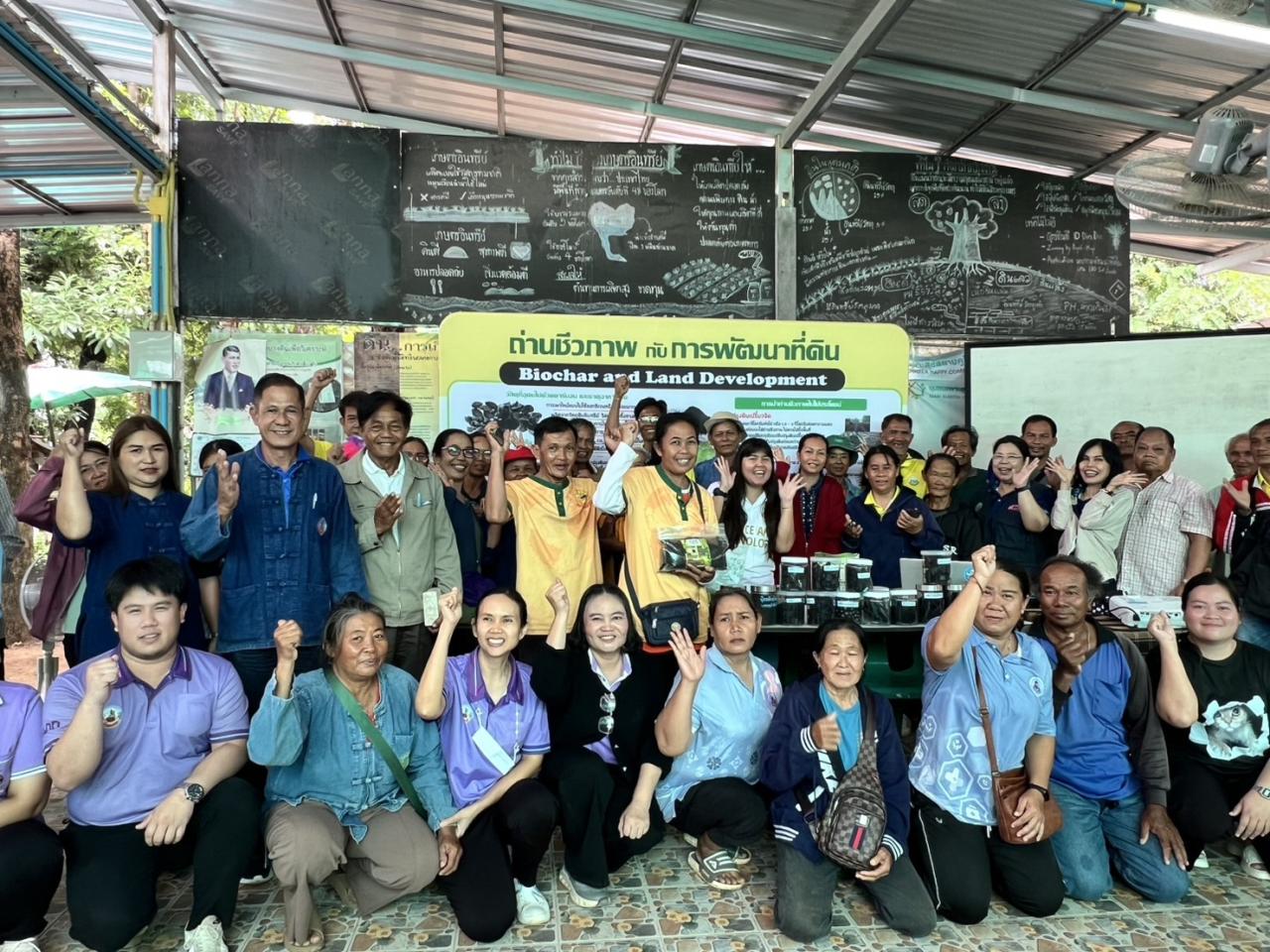 ➡️ นอกจากนี้ หมอดินอาสาชลาลัย ทับสิงห์ ซึ่งเป็นเจ้าของแปลงวิจัย ได้ถ่ายทอดประสบการณ์ตรงในการดูแลแปลงทดลองและการใช้ถ่านชีวภาพ (Biochar) ในการปรับปรุงบำรุงดินแก่เกษตรกร โดยมีหมอดินอาสาและเกษตรกรเข้าร่วมรับฟังการอบรมจำนวน 100 คน