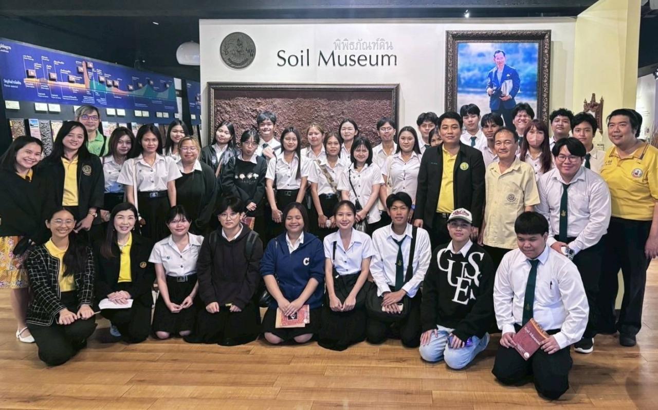 กลุ่มงานพิพิธภัณฑ์ดิน สำนักงานเลขานุการกรม กรมพัฒนาที่ดิน ให้การต้อนรับอาจารย์และนักศึกษา สาขาวิชาเกษตรเขตร้อน คณะเกษตร มหาวิทยาลัยเกษตรศาสตร์ จำนวน 32 คน ในโอกาสเข้าเยี่ยมชมพิพิธภัณฑ์ดิน เพื่อส่งเสริมการเรียนรู้นอกห้องเรียนและเพิ่มพูนความรู้ด้านทรัพยากรดินที่เกี่ยวข้องกับสาขาวิชา โดยมีนายพหล รักสำรวจ นักสำรวจดินชำนาญการพิเศษ และนายเฉลิมชัย แสงทองพินิจ นักสำรวจดินชำนาญการ จากกลุ่มวินิจฉัยคุณภาพและกำลังผลิตของดิน ร่วมกับนางสุธินี ขจรเวหาศน์ นักสำรวจดินชำนาญการ และนายกิตติ วงษ์แสง นักสำรวจดินปฏิบัติการ จากกลุ่มพัฒนาและประยุกต์ใช้ระบบฐานข้อมูล กองสำรวจดินและวิจัยทรัพยากรดิน เป็นวิทยากรบรรยายให้ความรู้เกี่ยวกับทรัพยากรดิน เครื่องมือและกระบวนการสำรวจดิน ลักษณะของดินที่มีปัญหา ตลอดจนโครงการอันเนื่องมาจากพระราชดำริและแนวทางการแก้ไขปัญหา เพื่อสร้างความเข้าใจและตระหนักถึงความสำคัญของทรัพยากรดิน อีกทั้งยังสามารถนำไปประยุกต์ใช้ในการเรียนและวิชาชีพด้านการเกษตรต่อไป