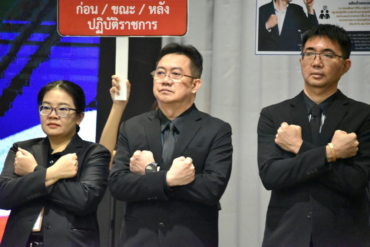 โอกาสนี้ ได้ร่วมกันประกาศเจตนารมณ์ต่อต้านการทุจริต ว่าจะประพฤติปฏิบัติตนด้วยความซื่อสัตย์สุจริต ไม่กระทำการทุจริต จะยึดมั่นในความยุติธรรม ยึดถือประโยชน์ส่วนรวม มากกว่าประโยชน์ส่วนตน จะปกป้องเทิดทูนสถาบันชาติ ศาสนา พระมหากษัตริย์ และประชาชน และเจริญรอยตามเบื้องพระยุคลบาท พระบาทสมเด็จพระเจ้าอยู่หัว ด้วยจิตอาสา พร้อมทำความดีด้วยหัวใจ ซึ่งในปี 2569 นี้ กรมฯ ได้จัดกิจกรรมภายใต้แนวคิด HERO OF THE TRUTH ซึ่งหมายถึง “คนธรรมดาที่กล้าพูดความจริง” กล้าเปิดเผยข้อมูล การตรวจสอบ และการยืนหยัดในความถูกต้อง คือ พลังที่จะขับเคลื่อนสังคมไทยไปสู่อนาคตที่ยั่งยืน และเป็นสิ่งที่ทุกคนทำได้ทันที จากนั้น ได้ร่วมกันแสดงออกเชิงสัญลักษณ์ในการต่อต้านการทุจริต เพื่อยืนยันเจตนารมณ์อย่างแน่วแน่ในการไม่ยอมรับการทุจริตคอร์รัปชันในทุกรูปแบบ และปฏิบัติตามนโยบาย No Gift Policy ของกรมพัฒนาที่ดิน