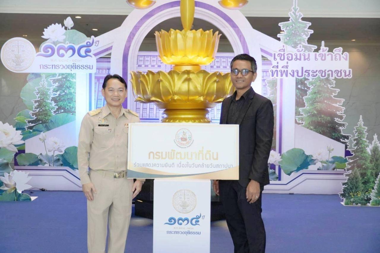 นายบัญฑิต จันทรัตน์ ผู้อำนวยการกลุ่มนิติการ ได้รับมอบหมายจากกรมพัฒนาที่ดิน ร่วมแสดงความยินดีเนื่องในโอกาสวันคล้ายวันสถาปนากระทรวงยุติธรรม ครบรอบ 135 ปี ในการนี้ กรมพัฒนาที่ดิน ได้ร่วมบริจาคเงินสมทบกองทุนสวัสดิการสำนักงานปลัดกระทรวงยุติธรรม โดยมี นายสำรวม บุญเสริม ผู้ช่วยปลัดกระทรวงยุติธรรม ให้การต้อนรับ ณ อาคารกระทรวงยุติธรรม ถนนแจ้งวัฒนะ เขตหลักสี่ กรุงเทพมหานคร