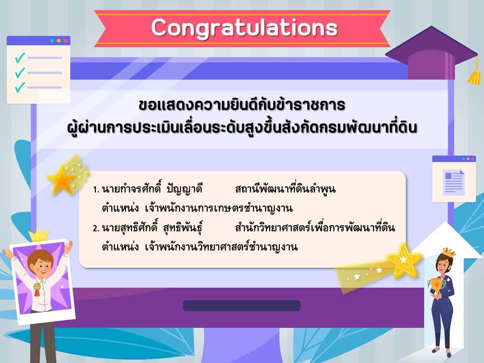 ขอแสดงความยินดีกับข้าราชการผู้ผ่านการประเมินเลื่อนระดับให้สูงขึ้น ตำแหน่งประเภททั่วไปจำนวน 2 ท่าน