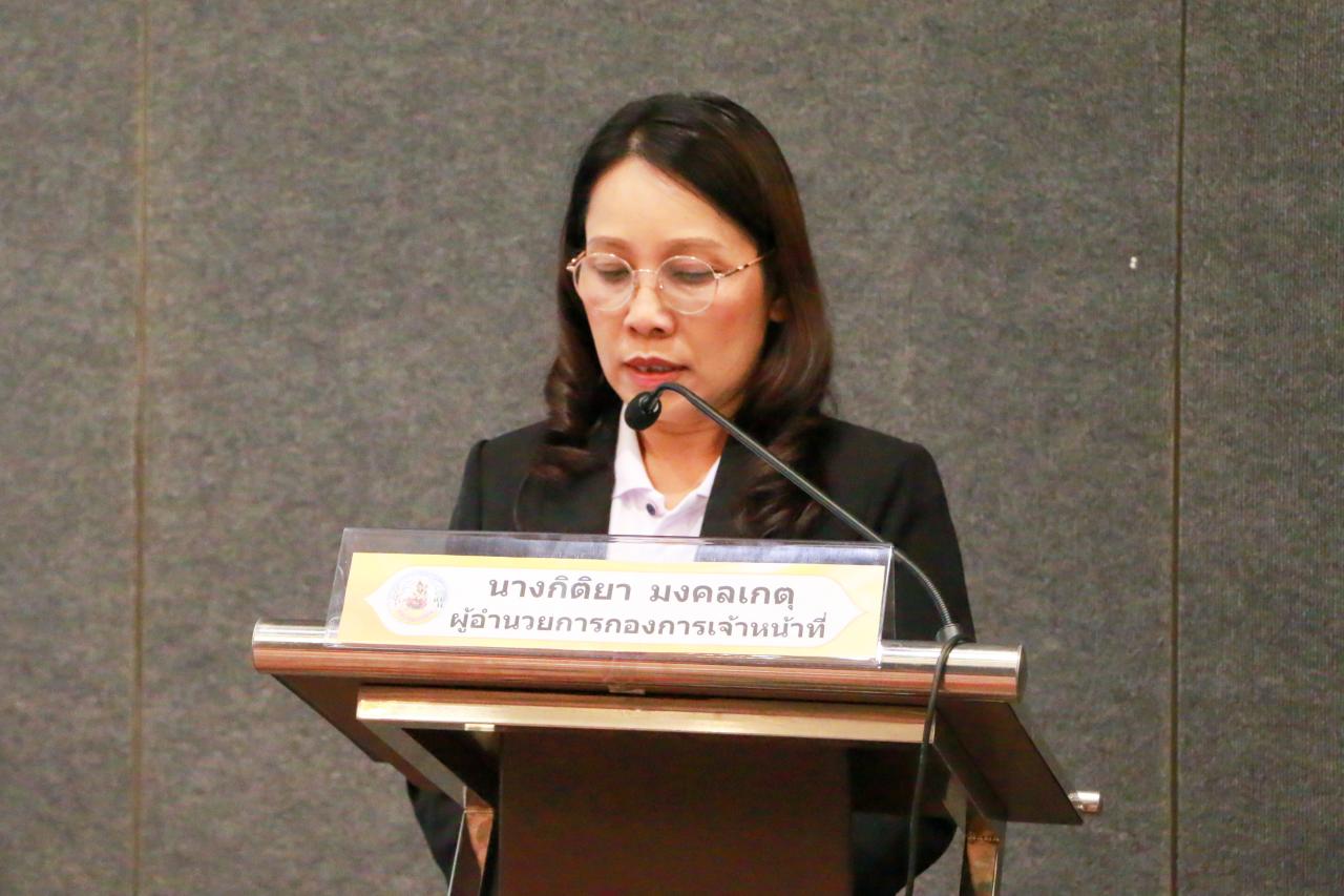โดยมีนางกิติยา มงคลเกตุ ผู้อำนวยการกองการเจ้าหน้าที่ เป็นผู้กล่าวรายงาน