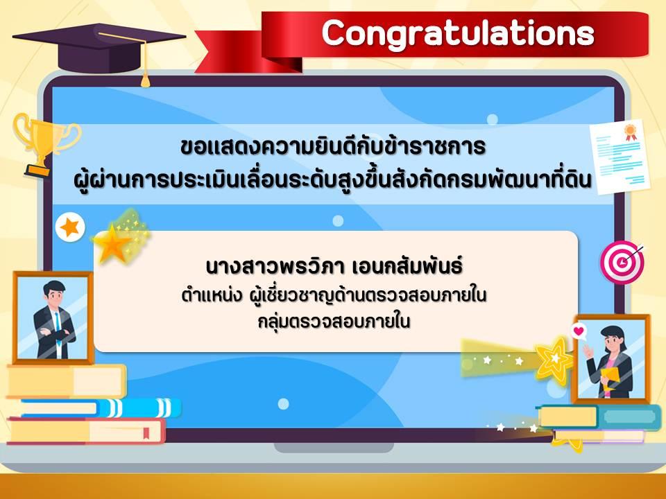 ขอแสดงความยินดีกับข้าราชการผู้ผ่านการประเมินเลื่อนระดับให้สูงขึ้น ตำแหน่งประเภทเชี่ยวชาญจำนวน 1 ท่าน