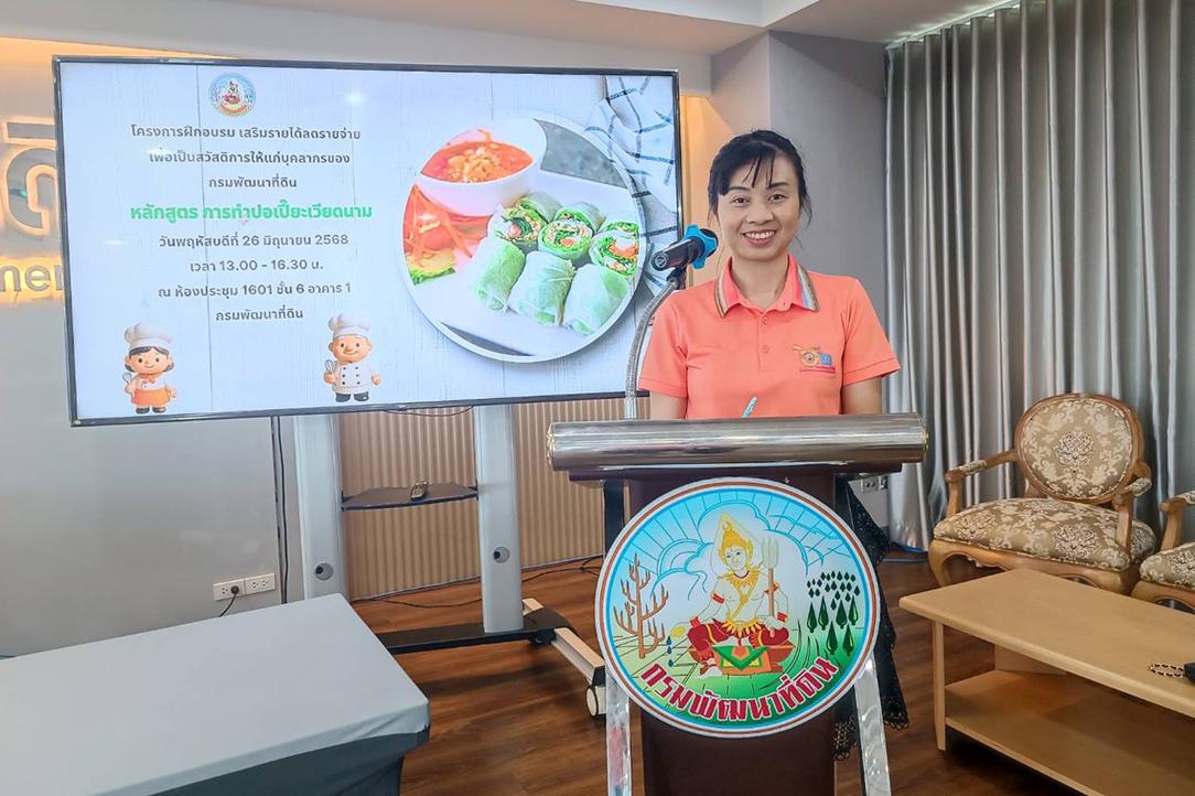 วันพฤหัสบดีที่ 26 มิถุนายน 2568 เวลา 13.00 - 16.30 น. กองการเจ้าหน้าที่ กรมพัฒนาที่ดิน จัดโครงการเสริมรายได้ ลดรายจ่าย หลักสูตร"การทำปอเปี๊ยะเวียดนาม" เป็นสวัสดิการในการช่วยเหลือและอำนวยความสะดวกให้แก่บุคลากรในการปฏิบัติราชการและการดำรงชีวิต