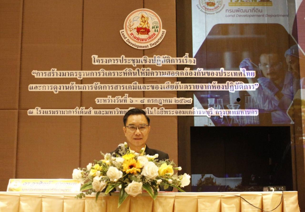 นางกิติยา มงคลเกตุ ผู้อำนวยการกองการเจ้าหน้าที่ ร่วมเป็นเกียรติในพิธีเปิดการประชุมเชิงปฏิบัติการ “การสร้างมาตรฐานการวิเคราะห์ดินให้มีความสอดคล้องกันของประเทศไทย และการดูงานด้านการจัดการสารเคมีและของเสียอันตรายจากห้องปฏิบัติการ” ระหว่างวันที่ 6 - 8 กรกฎาคม 2568 ซึ่งได้รับเกียรติจาก นายอาทิตย์ ศุขเกษม รองอธิบดีด้านวิชาการ เป็นประธานในพิธีเปิดการประชุม และนางปิ่นเพชร ดีล้อม ผู้อำนวยการสำนักวิทยาศาสตร์เพื่อการพัฒนาที่ดิน กล่าวรายงาน โดยมีนายสถิระ อุดมศรี ผู้อำนวยการกองสำรวจดินและวิจัยทรัพยากรดิน
