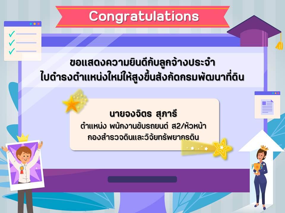 ขอแสดงความยินดีกับลูกจ้างประจำไปดำรงตำแหน่งใหม่ให้สูงขึ้น จำนวน 1 ท่าน