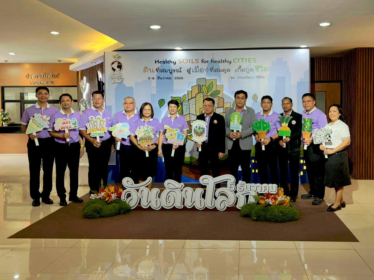 วันพฤหัสบดีที่ 22 พฤษภาคม 2568 เวลา 13.30 น. ดร.ทวีศักดิ์ ธนเดโชพล อธิบดีกรมพัฒนาที่ดิน พร้อมด้วย ดร.สุมิตรา วัฒนา และนายสุรชาติ มาลาศรี รองอธิบดีกรมพัฒนาที่ดิน เตรียมความพร้อมการจัดงานวันสถาปนากรมพัฒนาที่ดิน เนื่องในโอกาสครบรอบ 62 ปี ในหัวข้อ “62 ปี ดินนำ น้ำตาม สู่ความยั่งยืนเกษตรไทย” ในวันที่ 22-23 พฤษภาคม 2568 ณ กรมพัฒนาที่ดิน เพื่อความเป็นสิริมงคล โดยมีนายวิศิษฐ์ งามสม ผู้อำนวยการกองแผนงาน พร้อมด้วย นางกรียาภรณ์ เทพหัสดิน ณ อยุธยา รักษาการผู้เชี่ยวชาญด้านนโยบายและยุทธศาสตร์ นางสาวพยัตติกา พลสระคู ผู้อำนวยการกลุ่มงาน UNCCD นางสุมลมาลย์ จงดี ผู้อำนวยการกลุ่มประสานงานโครงการอันเนื่องมาจากพระราชดำริ และเจ้าหน้าที่ที่เกี่ยวของกองแผนงาน ร่วมเตรียมความพร้อมในการจัดงานในส่วนของบอร์ดเฉลิมพระเกียรติ ซึ่งเป็นการดำเนินงานติดตาม ที่กรมฯสนองพระราชดำริ การจัดแสดงนิทรรศการจัดการลดความเสื่อมโทรมของที่ดินด้วยแนวคิด Land Degradation Neutrality : LDN จังหวัดตาก ซึ่งในวันที่ 23 พฤษภาคม 2568 สามารถรับชมการถ่ายทอดผ่านทาง Facebook Live กรมพัฒนาที่ดิน ช่วง 10.00-11.00 น. และ 13.30-14.30 น. ทั้งนี้ ภายในงานมีการจัดแสดงนิทรรศการ การจำหน่ายสินค้าทางการเกษตร และกิจกรรมต่างๆอีกมากมาย ณ กรมพัฒนาที่ดิน กรุงเทพมหานคร