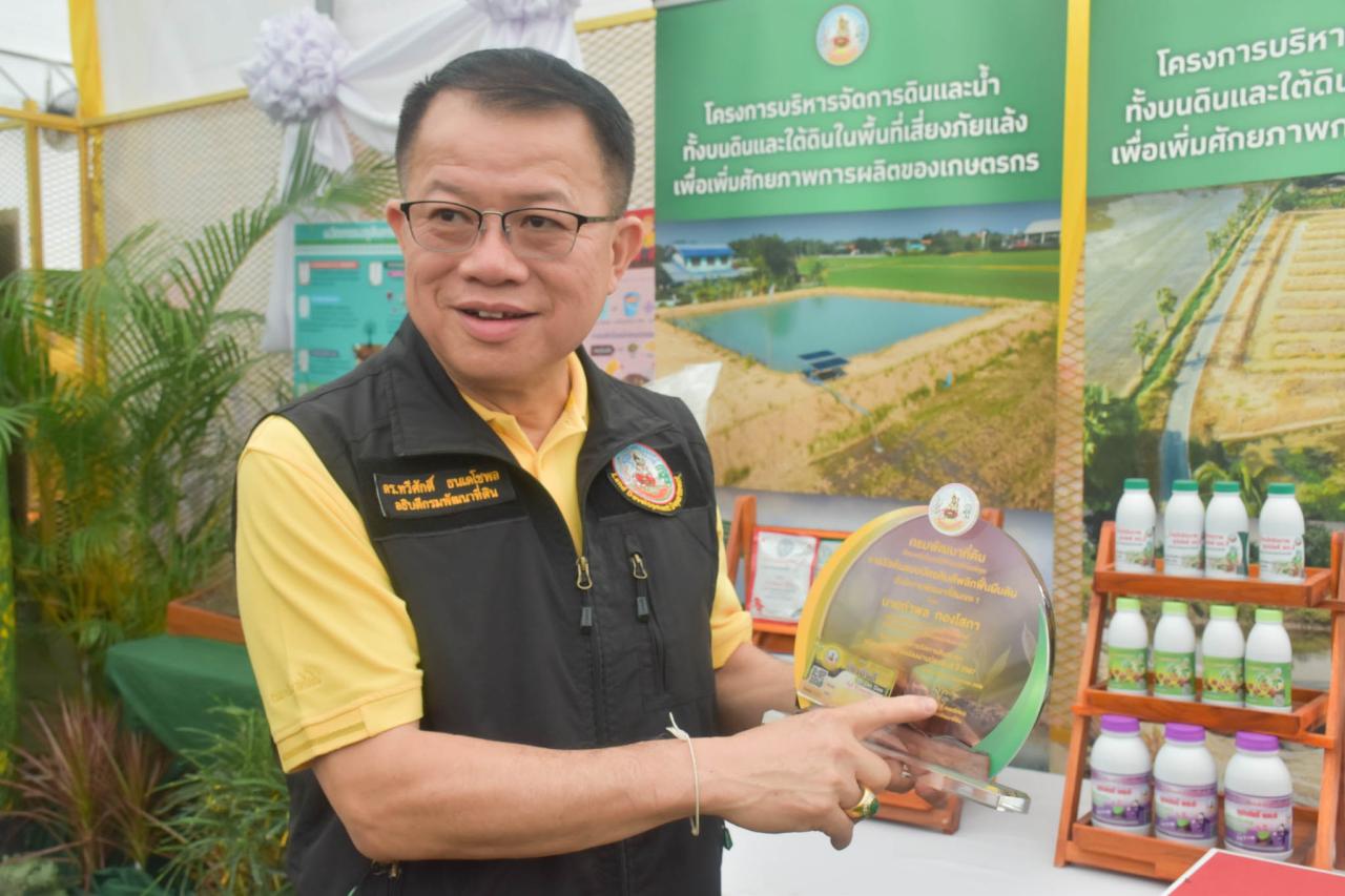เข้าร่วมพิธีเปิด “งานถ่ายทอดเทคโนโลยี (Field day) เพื่อขยายศักยภาพการผลิตเมล็ดพันธุ์ข้าวและข้าวคุณภาพดี ภายใต้โครงการระบบส่งเสริมเกษตรแบบแปลงใหญ่ ปี 2568” โดยมี นายอิทธิ ศิริลัทธยากร รัฐมนตรีช่วยว่าการกระทรวงเกษตรและสหกรณ์ เป็นประธาน นายประยูร อินสกุล ปลัดกระทรวงเกษตรและสหกรณ์ และผู้บริหารกระทรวงเกษตรและสหกรณ์ เข้าร่วม ณ พระบรมราชานุสรณ์ดอนเจดีย์ จังหวัดสุพรรณบุรี ซึ่งงานครั้งนี้จัดขึ้นเพื่อสร้างความตระหนักรู้และส่งเสริมให้เกษตรกร โดยเฉพาะกลุ่มนาแปลงใหญ่และศูนย์ข้าวชุมชนนำเทคโนโลยีสมัยใหม่มาใช้ในการเพิ่มประสิทธิภาพและลดต้นทุนการผลิตข้าว รวมถึงยกระดับคุณภาพและมูลค่าผลผลิตข้าว ซึ่งภายในงานมีการมอบปัจจัยการผลิตและโฉนดเพื่อการเกษตรให้แก่เกษตรกร ซึ่งกรมพัฒนาที่ดิน โดยสำนักงานพัฒนาที่ดินเขต 1 ร่วมส่งมอบโครงการบริหารจัดการดินและน้ำทั้งบนดินและใต้ดินในพื้นที่เสี่ยงภัยแล้ง เพิ่มศักยภาพการผลิตของเกษตรกร และมอบสารเร่งซุปเปอร์ พด. น้ำหมักชีวภาพ เมล็ดพันธุ์ปอเทือง ฯลฯ เพื่อให้เกษตรกรได้นำองค์ความรู้ไปต่อยอดและส่งเสริมให้เกษตรกรผลิตข้าวอย่างยั่งยืน และสามารถนำนโยบายการพัฒนาข้าวไปสู่การปฏิบัติทั่วประเทศ