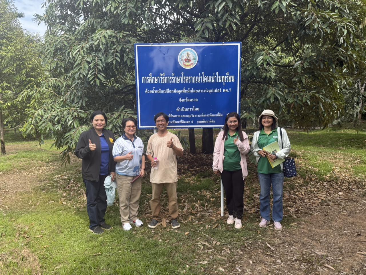 (2) การศึกษาวิธีการรักษาโรครากเน่าโคนเน่าในทุเรียนด้วยน้ำหมักเปลือกมังคุดที่หมักโดยสารเร่งซุปเปอร์พด.2