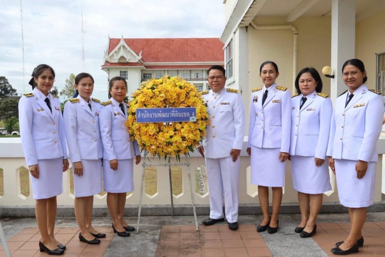 วันจันทร์ที่ 13 ตุลาคม 2568 นายสุทธิดล วงษ์จันทร์ฬา ผู้อำนวยการสำนักงานพัฒนาที่ดินเขต 4 พร้อมด้วยนางสาวมยุรี อบสุข ผู้อำนวยการสถานีพัฒนาที่ดินอุบลราชธานี และเจ้าหน้าที่ในสังกัดร่วมพิธีวางพวงมาลา เนื่องในวันนวมินทรมหาราชา โดยมี นายชำนาญ ชื่นตา ผู้ว่าราชการจังหวัดอุบลราชธานี เป็นประธานพิธี พร้อมด้วยรองผู้ว่าราชการจังหวัดอุบลราชธานี หัวหน้าส่วนราชการ หน่วยงาน เข้าร่วมพิธี เพื่อถวายเป็นพระราชกุศล แด่พระบาทสมเด็จพระบรมชนกาธิเบศร มหาภูมิพลอดุลยเดชมหาราช บรมนาถบพิตร เนื่องในวันนวมินทรมหาราช 13 ตุลาคม และเพื่อน้อมรำลึกในพระมหากรุณาธิคุณอันหาที่สุดมิได้ ที่พระองค์ทรงมีต่อพสกนิกรชาวไทย ทรงบำเพ็ญพระราชกรณียกิจนานัปการ เพื่อความอยู่ดีมีสุขของประชาชนและความเจริญมั่นคงของประเทศชาติอย่างยั่งยืน. ณ หอประชุมจังหวัดอุบลราชธานี ศาลากลางจังหวัดอุบลราชธานี อำเภอเมืองอุบลราชธานี จังหวัดอุบลราชธานี
