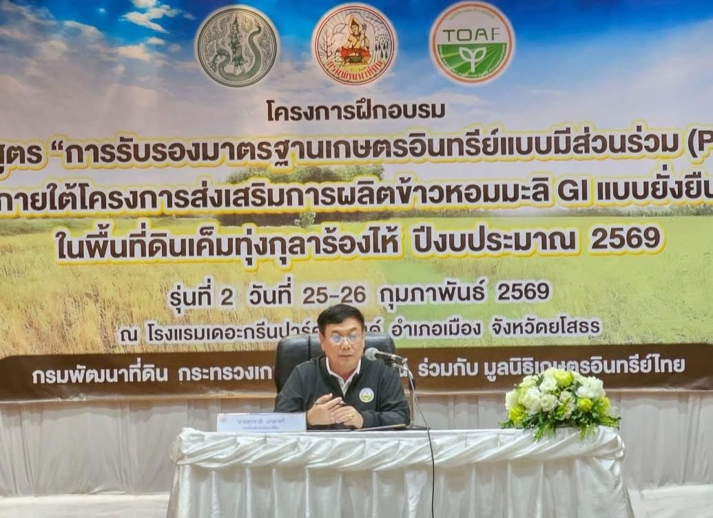 🎯 ภารกิจหลักในการฝึกอบรม: กรมพัฒนาที่ดิน มุ่งส่งเสริมให้เกษตรกรจำนวน 100 ราย ที่เข้าร่วมรับการอบรมจากทีมวิทยากรเครือข่ายมูลนิธิเกษตรอินทรีย์ไทย ณ โรงแรมเดอะกรีนปาร์ค แกรนด์ จ.ยโสธร มีความเข้าใจในมาตรฐานเกษตรอินทรีย์และระบบ PGS อย่างถ่องแท้ เพื่อนำกระบวนการรับรองแบบมีส่วนร่วมไปใช้สร้างความเชื่อมั่นในสินค้าเกษตร และสร้างรายได้ที่ยั่งยืนให้กับชุมชนในเขตพื้นที่ทุ่งกุลาร้องไห้