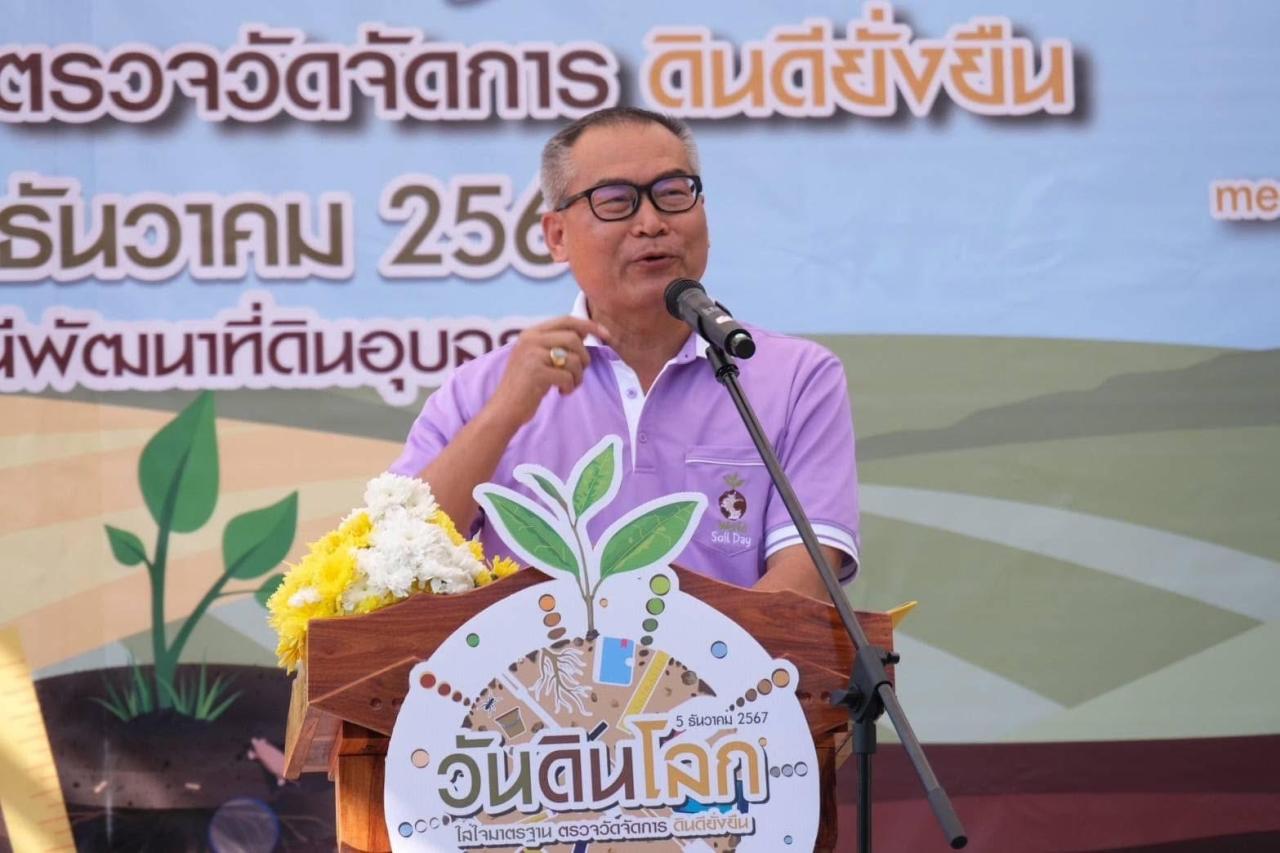 วันพฤหัสบดีที่ 19 ธันวาคม 2567 นายสุทธิดล วงษ์จันฬา ผู้อำนวยการสำนักงานพัฒนาที่ดินเขต 4 ร่วมเป็นเกียรติในพิธีเปิดงานวันดินโลก ปี 2567 ณ สถานีพัฒนาที่อุบลราชธานี จังหวัดอุบลราชธานี ภายใต้หัวข้อ “Caring for soils: measure, monitor, manage ใส่ใจมาตรฐาน ตรวจวัดจัดการ ดินดียั่งยืน” โดยมี ว่าที่พันตรี อดิศักดิ์ น้อยสุวรรณ ผู้ว่าราชการจังหวัดอุบลราชธานี เป็นประธานกล่าวเปิดงาน นางสาวมยุรี อบสุข ผู้อำนวยการสถานีพัฒนาที่ดินอุบลราชธานี กล่าวรายงานวัตถุประสงค์ และมีนายสรมงคล มังคละสิริ รองผู้ว่าราชการจังหวัดอุบลราชธานี หัวหน้าส่วนราชการพร้อมเจ้าหน้าที่ฯ หมอดินอาสา เกษตรกร นักเรียนและสื่อมวลชน เข้าร่วมงาน เพื่อน้อมรำลึกพระมหากรุณาธิคุณพระบาทสมเด็จพระบรมชนกาธิเบศร มหาภูมิพลอดุลยเดชมหาราช บรมนาถบพิตร ที่ทรงเป็นนักวิทยาศาสตร์ด้านดินเพื่อมนุษยธรรม เผยแพร่พระราชกรณียกิจด้านการพัฒนาทรัพยากรดินและสืบสานพระราชปณิธาน ตระหนักถึงความสำคัญของการอนุรักษ์และพัฒนาทรัพยากรดินและน้ำให้เกิดความอุดมสมบูรณ์สามารถทำการเกษตรสร้างความมั่นคงทางด้านอาหาร
