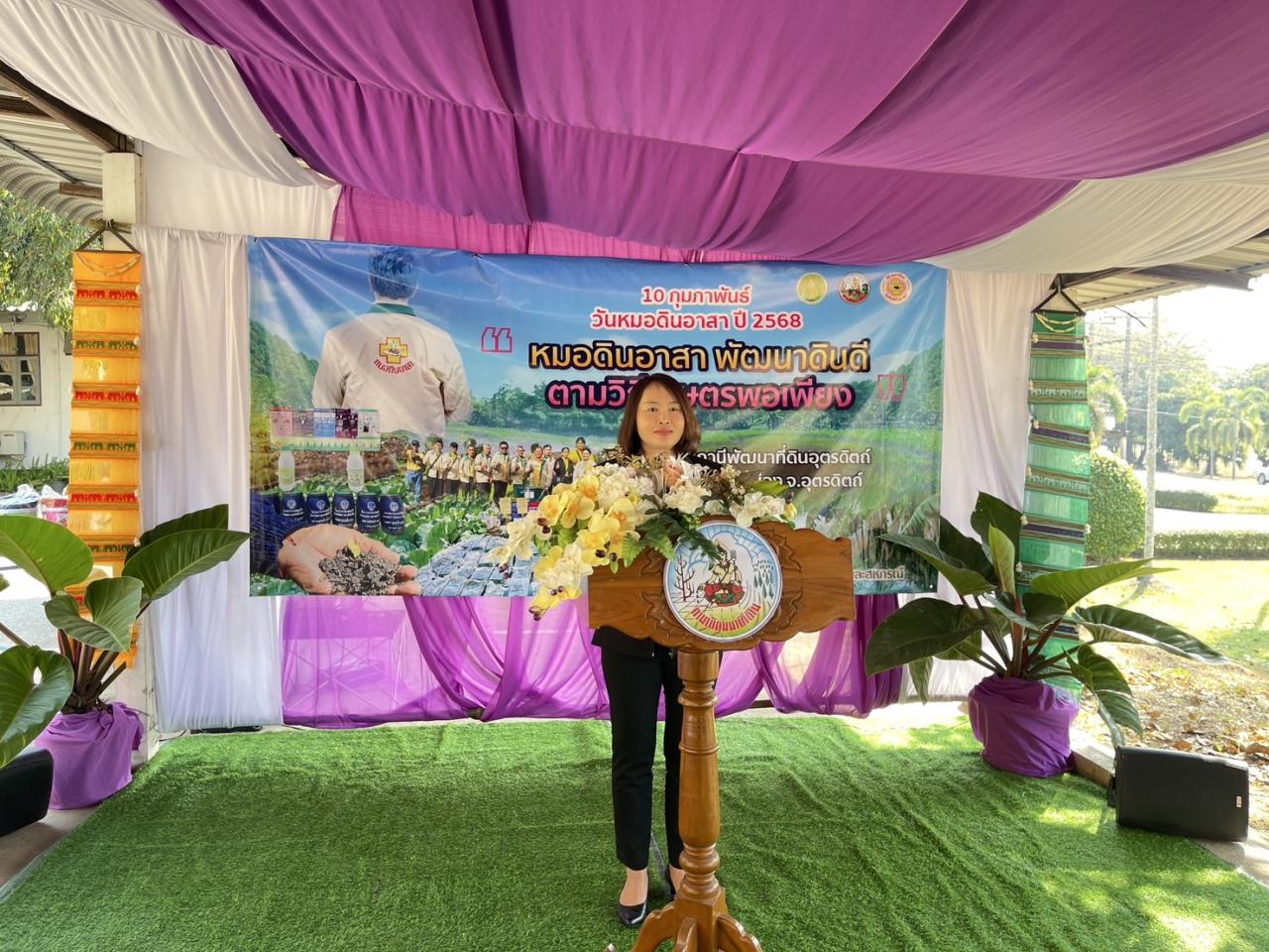 นางสุพัตรา บุรีรัตน์ ผู้อำนวยการสำนักงานพัฒนาที่ดินเขต 8 เป็นประธานเปิดงานวันหมอดินอาสา ปี 2568 ภายใต้หัวข้อ หมอดินอาสา พัฒนาที่ดิน ตามวิถีเกษตรพอเพียง โดยมี ผอ.สพด.อุตรดิตถ์ ข้าราชการ เจ้าหน้าที่ที่เกี่ยวข้อง และหมอดินอาสา ร่วมเปิดงานฯ ณ สถานีพัฒนาที่ดินอุตรดิตถ์ ตำบลน้ำริด อำเภอเมือง จังหวัดอุตรดิตถ์ เพื่อเชิดชูเกียรติแก่หมอดินอาสาที่สร้างคุณประโยชน์ เชื่อมความสัมพันธ์ระหว่างหมอดินอาสาและเจ้าหน้าที่ สร้างความเข้มแข็งและให้ขวัญกำลังใจแก่หมอดินอาสาและเครือข่าย