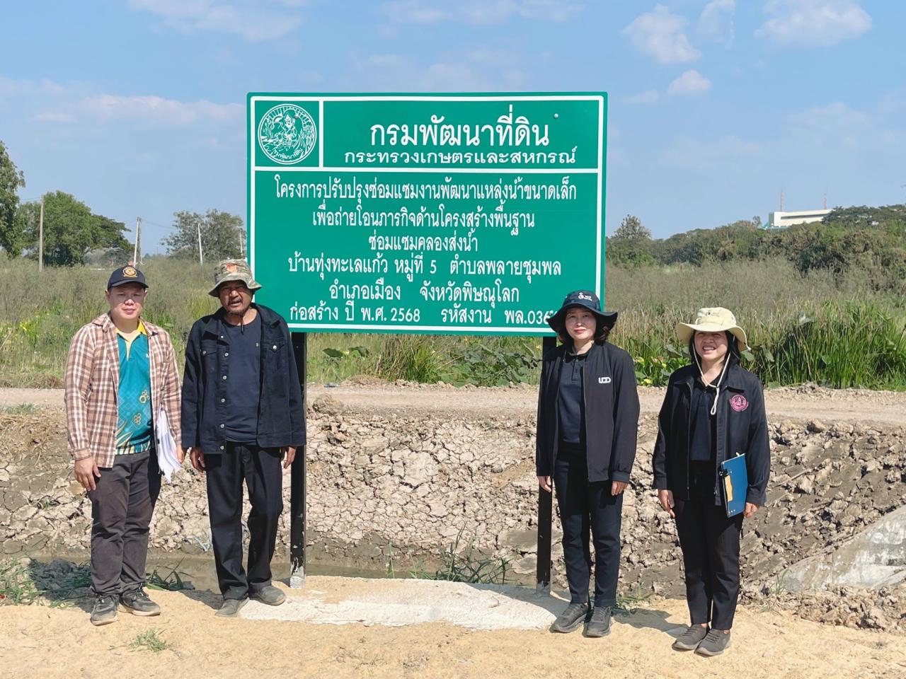 นางสุพัตรา บุรีรัตน์ ผู้อำนวยการสำนักงานพัฒนาที่ดินเขต 8 พร้อมด้วย ผอ.สพด.พิษณุโลก ข้าราชการ และเจ้าหน้าที่ที่เกี่ยวข้อง ร่วมลงพื้นที่ตรวจรับงานโครงการปรับปรุงซ่อมแซมงานพัฒนาแหล่งน้ำขนาดเล็ก เพื่อถ่ายโอนภารกิจด้านโครงสร้างพื้นฐาน ซ่อมแซมคลองส่งน้ำ ณ บ้านทุ่งทะเลแก้ว หมู่ที่ 5 ต.พลายชุมพล อ.เมือง จ.พิษณุโลก