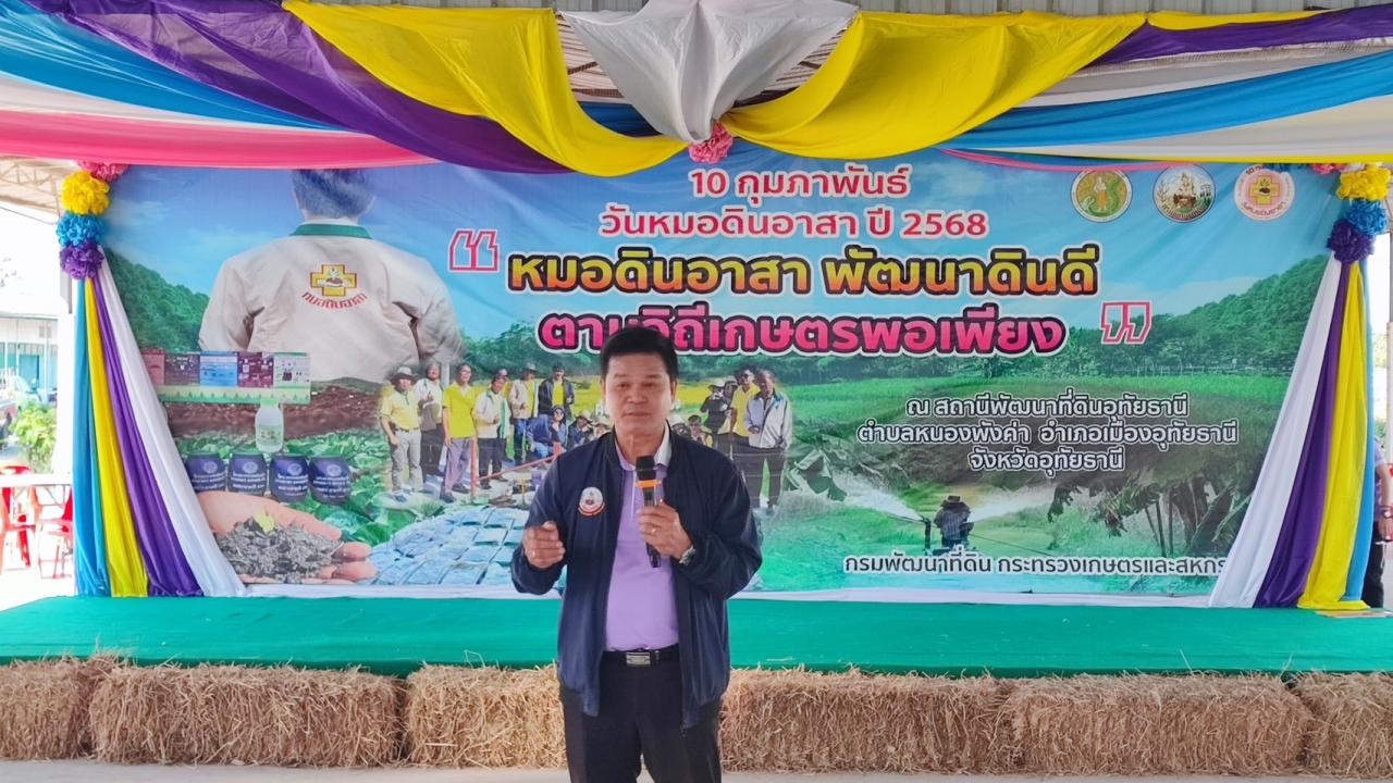 วันที่ 10 กุมภาพันธ์ พ.ศ.2568 นายวิรุธ คงเมือง ผู้อำนวยการสำนักงานพัฒนาที่ดินเขต 9 ร่วมงานวันหมอดินอาสา กรมพัฒนาที่ดิน ประจำปี 2568 “ หมอดินอาสา พัฒนาดินดี ตามวิถีเกษตรพอเพียง“ กิจกรรมดังกล่าวจัดขึ้นเพื่อเชิดชูเกียรติแก่หมอดินอาสาผู้สร้างคุณประโยชน์ต่อสาธารณชนในการถ่ายทอดเทคโนโลยีการพัฒนาที่ดินให้แก่เพื่อนเกษตรกรมาอย่างยาวนาน ภายในงานได้จัดกิจกรรมวันหมอดินอาสาโดยรับชมการถ่ายทอดสดผ่านระบบออนไลน์ของกรมพัฒนาที่ดิน การแลกเปลี่ยนประสบการณ์ของเพื่อนหมอดิน สร้างสานสัมพันธ์ และสันทนาการ ให้แก่หมอดินอาสาที่ร่วมกิจกรรมฯ จำนวน 100 ราย ณ สถานีพัฒนาที่ดินอุทัยธานี ต.หนองพังค่า อ.เมืองอุทัยธานี จ.อุทัยธานี