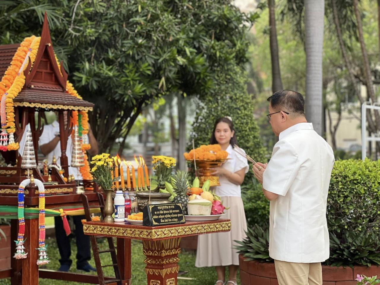 วันที่ 30 เมษายน 2568 นายคำนึง แสงขำ ผู้อำนวยการสำนักงานพัฒนาที่ดินเขต 10 เข้าร่วมสักการะสิ่งศักดิ์สิทธิ์ประจำกรมฯ ศาลพระภูมิ ศาลตา-ยาย อนุสาวรีย์ ดร.บรรเจิด พลางกูร และเจ้าแม่ไทรงาม จากนั้น ในเวลา 08.39 น. ได้ขออาราธนาเจริญพระพุทธมนต์นิมนต์พระคุณเจ้าวัชรินทร์ วัชรินโท (หลวงพ่อหม่ำ) วัดนพรัตนาราม จังหวัดนครศรีธรรมราช มาทำพิธีพุทธาภิเษกและเบิกเนตร พระศรีปฐพีพัฒนมุณี ณ สำนักอธิบดีกรมพัฒนาที่ดิน อาคาร 1 กรมพัฒนาที่ดิน เขตจตุจักร กรุงเทพฯ