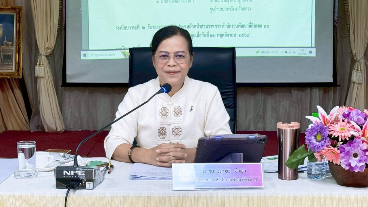 นางสาวเกษร จำปา ผู้อำนวยการสำนักงานพัฒนาที่ดินเขต 10 พร้อมด้วยผู้อำนวยการสถานีพัฒนาที่ดิน ผู้อำนวยการศูนย์ ฯ ผู้อำนวยการกลุ่ม/หัวหน้าฝ่าย ข้าราชการ และเจ้าหน้าที่ในสังกัด ร่วมประชุมหัวหน้าส่วนราชการสำนักงานพัฒนาที่ดินเขต 10 ครั้งที่ 1/2569 ทั้งนี้ได้มอบแนวทางขับเคลื่อนการดำเนินงานของสำนักงานพัฒนาที่ดินเขต 10 ประจำปี 2569 ทั้งนี้ ได้เน้นย้ำ ให้ทุกหน่วยงานทำแผน และขั้นตอนการดำเนินงานของงบลงทุน การตรวจสอบความถูกต้องของร่างขอบเขตของงานและสัญญาจ้างต่าง ๆ การดำเนินงานให้ยึดตามระเบียบ ขั้นตอน เน้นความถูกต้อง เกิดประโยชน์สูงสุดต่อเกษตรกรและงบประมาณที่ใช้ไป และประชุมเตรียมความพร้อม การประชุมเชิงปฏิบัติการเพื่อรับฟังความเห็นการปรับบทบาทภารกิจ กระบวนงาน โครงสร้างและกรอบอัตรากำลัง และแนวทางจัดทำคู่มือการใช้พระราชบัญญัติพัฒนาที่ดิน พ.ศ. 2551 (ฉบับปรับปรุง) ครั้งที่ 1 (ภาคกลาง) ที่จะจัดประชุมในวันจันทร์ ที่ 19 มกราคม 2569 ณ โรงแรมเซ็นทารา ไลฟ์ วิศมาราชบุรี พร้อมทั้ง แนะนำตัวและแสดงความยินดีกับข้าราชการที่ย้ายมาดำรงตำแหน่งใหม่ ในสังกัดสำนักงานพัฒนาที่ดินเขต 10