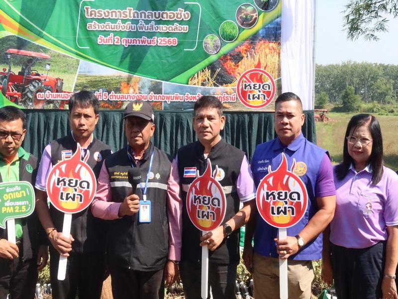 วันอาทิตย์ที่ 2 กุมภาพันธ์ 2568 เวลา 10.00 น. สถานีพัฒนาที่ดินสุราษฎร์ธานี จัดโครงการ "ไถกลบตอซัง สร้างดินยั่งยืน ฟื้นสิ่งแวดล้อม" ปีงบประมาณ 2568" ณ บ้านหนองเตียน หมู่ที่ 5 ตำบลบางงอน อำเภอพุนพิน จังหวัดสุราษฎร์ธานี โดยมีนายสุคนธ์ หนูภักดี รองผู้ว่าราชการจังหวัดสุราษฎร์ธานี นายสุชล แก้วเกาะสะบ้า ผู้อำนวยการสำนักงานพัฒนาที่ดินเขต 11 พร้อมด้วยนายนพพล ถมทอง ผู้อำนวยการสถานีพัฒนาที่ดินสุราษฎร์ธานี ข้าราชการ เจ้าหน้าที่ ส่วนราชการที่เกี่ยวข้อง ตลอดจนเกษตรกร หมอดินอาสา และผู้นำหมู่บ้านในพื้นที่ เข้าร่วมงานในครั้งนี้ ซึ่งมีศูนย์กลางการจัดงาน ณ จังหวัดเชียงใหม่ โดยมีดร.ทวีศักดิ์ ธนเดโชพล อธิบดีกรมพัฒนาที่ดิน กล่าวรายงานการจัดงานฯ เพื่อรณรงค์ไถกลบตอซัง ร่วมกับการใช้นวัตกรรมจุลินทรีย์พด. ผลิตปุ๋ยอินทรีย์ช่วยให้ดินคงความอุดมสมบูรณ์ บำรุงดินให้มีอินทรียวัตถุเพิ่มขึ้น เกิดความสมดุลของระบบนิเวศ ช่วยลดหมอกควันและฝุ่น PM2.5 ส่งผลดีต่อสุขภาพของประชาชน เป็นมิตรกับสิ่งแวดล้อม ซึ่งนายประยูร อินสกุล ปลัดกระทรวงเกษตรและสหกรณ์ ได้กล่าวทักทายผู้ร่วมงานในพื้นที่จังหวัดเชียงใหม่ ผู้อำนวยการสำนักงานพัฒนาที่ดินเขต ซึ่งเป็นพื้นที่ตัวแทนภาค 11 จังหวัด เกษตรกร และผู้ร่วมงานทั้ง 61 จังหวัด โดยมีนายอัครา พรหมเผ่า รัฐมนตรีช่วยว่าการกระทรวงเกษตรและสหกรณ์ กล่าวเปิดการ kick off โครงการ "ไถกลบตอซัง สร้างดินยั่งยืน ฟื้นสิ่งแวดล้อม" ปีงบประมาณ 2568 และนำขบวนรถไถ เพื่อร่วมไถกลบ พร้อมแจกเมล็ดพันธุ์พืชปุ๋ยสดให้เกษตรกร หว่านเมล็ดพันธุ์ในแปลงสาธิต และมอบปัจจัยการผลิตและผลิตภัณฑ์เทคโนโลยีชีวภาพของกรมพัฒนาที่ดิน ให้กับเกษตรกร โดยถ่ายทอดสด ผ่านระบบ zoom conference Meeting และ Facebook live พร้อมกัน 61 จังหวัดทั่วประเทศ