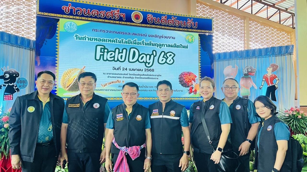 วันพฤหัสบดีที่ 24 เมษายน 2568 เวลา 11.00 น. ดร.ทวีศักดิ์ ธนเดโชพล อธิบดีกรมพัฒนาที่ดิน นายสุรชาติ มาลาศรี รองอธิบดีด้านปฏิบัติการ นายสุชล แก้วเกาะสะบ้า ผู้อำนวยการสำนักงานพัฒนาที่ดินเขต 11 และนายวิเชียร พรหมทอง ผู้อำนวยการสถานีพัฒนาที่ดินนครศรีธรรมราช ร่วมติดตามคณะรัฐมนตรีว่าการกระทรวงเกษตรและสหกรณ์ ( ศ.ดร.นฤมล ภิญโญสินวัฒน์) พร้อมด้วยรัฐมนตรีช่วยว่าการกระทรวงเกษตรและสหกรณ์ (นายอัครา พรหมเผ่า) รัฐมนตรีช่วยว่าการกระทรวงเกษตรและสหกรณ์ (นายอิทธิ ศิริลัทธยากร) ลงพื้นที่เปิดงานวันถ่ายทอดเทคโนโลยีเพื่อเริ่มต้นฤดูกาลผลิตใหม่ Field Day ปี 2568 พร้อมมอบนโยบาย และรับฟังปัญหา แนวทางการแก้ไข และการพัฒนาของผู้นำท้องที่ โดยมีนายวิทยา เขียวรอด รองผู้ว่าราชการจังหวัดนครศรีธรรมราช กล่าวต้อนรับ นายสุริยพล นุชอนงค์ อธิบดีกรมชลประทาน กล่าวรายงานฯ