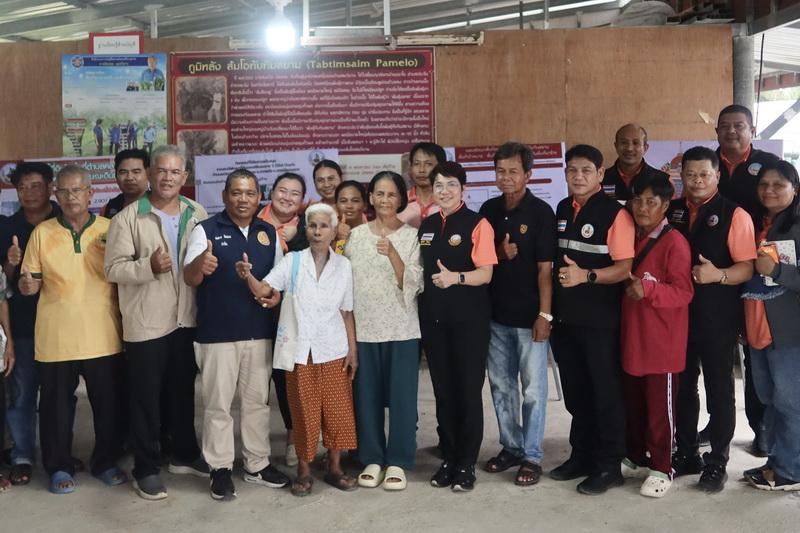 วันอาทิตย์ที่ 15 มิถุนายน 2568 เวลา 15.00 น. ดร.สุมิตรา วัฒนา รองอธิบดีกรมพัฒนาที่ดินด้านบริหาร พร้อมด้วยนางสาวเกษร จำปา ผู้อำนวยการสำนักเทคโนโลยีการสำรวจและทำแผนที่ นายบัญฑิต จันทรัตน์ ผู้อำนวยการกลุ่มงานเลขานุการคณะกรรมการพัฒนาที่ดิน สำนักงานเลขานุการกรม นายสุชล แก้วเกาะสะบ้า ผู้อำนวยการสำนักงานพัฒนาที่ดินเขต 11 ลงพื้นที่ติดตามงานศูนย์เรียนรู้การปลูกส้มโอทับทิมสยาม บ้านแสงวิมาน อำเภอปากพนัง จังหวัดนครศรีธรรมราช โดยมีนายวิเชียร พรหมทอง ผู้อำนวยการสถานีพัฒนาที่ดินนครศรีธรรมราช รายงานผลการดำเนินงาน พร้อมพบปะกับนายอิมรอน แสงวิมาน ประธานศูนย์ฯ รวมทั้งสมาชิกเกษตรกร หมอดินอาสา และเยี่ยมชมกิจกรรมต่างๆภายในศูนย์ฯ ซึ่งมีผชช./ผอ.กลุ่ม/สพด./หน.ฝ่ายฯ ข้าราชการและเจ้าหน้าที่เกี่ยวข้อง ร่วมลงพื้นที่ ณ ศูนย์เรียนรู้การปลูกส้มโอทับทิมสยาม บ้านแสงวิมาน หมู่ที่ 13 ตำบลคลองน้อย อำเภอปากพนัง จังหวัดนครศรีธรรมราช