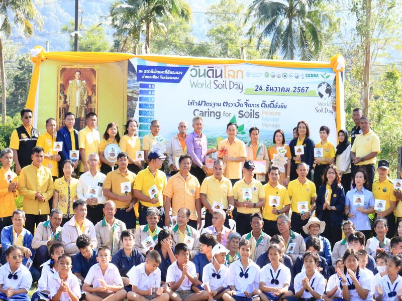วันอังคารที่ 24 ธันวาคม 2567 เวลา 10.00 น. สถานีพัฒนาที่ดินระนองจัดงานวันดินโลก (World Soil Day) ประจำปี 2567 "ใส่ใจมาตรฐาน ตรวจวัดจัดการ ดินดียั่งยืน Caring for soils: measure, monitor, manage" โดยมีนายสุพจน์ ภูติเกียรติขจร รองผู้ว่าราชการจังหวัดระนอง รักษาการผู้ว่าราชการจังหวัดระนอง เป็นประธานในพิธีเปิดฯ โดยมีนายนรา สุขไชย ผู้อำนวยการสำนักงานพัฒนาที่ดินเขต 11 รักษาการในตำแหน่งผู้อำนวยการสถานีพัฒนาที่ดินระนอง กล่าวรายงานถึงวัตถุประสงค์การจัดงานวันดินโลกในครั้งนี้ เพื่อเทิดพระเกียรติพระบาทสมเด็จพระบรมชนกาธิเบศร มหาภูมิพลอดุลยเดชมหาราช บรมนาถบพิตร ในด้านการปกป้องและพัฒนาทรัพยากรดิน เพื่อสร้างการรับรู้เรื่องวันดินโลกแก่ประชาชนในส่วนภูมิภาคทุกระดับ เพื่อให้เกิดความตระหนักถึงความสำคัญของทรัพยากรดิน และเกิดจิตสำนึกในการช่วยกันอนุรักษ์ทรัพยากรดินอย่างยั่งยืน ซึ่งภายในงานมีการจัดแสดงนิทรรศการเฉลิมพระเกียรติ ประวัติความเป็นมาของวันดินโลก นิทรรศการวิชาการด้านดิน/ฐานเรียนรู้การพัฒนาที่ดิน และมอบรางวัลเกษตรกรผู้ถือบัตรดินดีต้นแบบแก่หมอดินอาสา โดยมีเกษตรกร หมอดินอาสา ส่วนราชการ หน่วยงานภาคเอกชน คณะครูและนักเรียน และสื่อมวลชน เข้าร่วมงานในครั้งนี้ ณ สถานีพัฒนาที่ดินระนอง ตำบลราชกรูด อำเภอเมืองระนอง จังหวัดระนอง