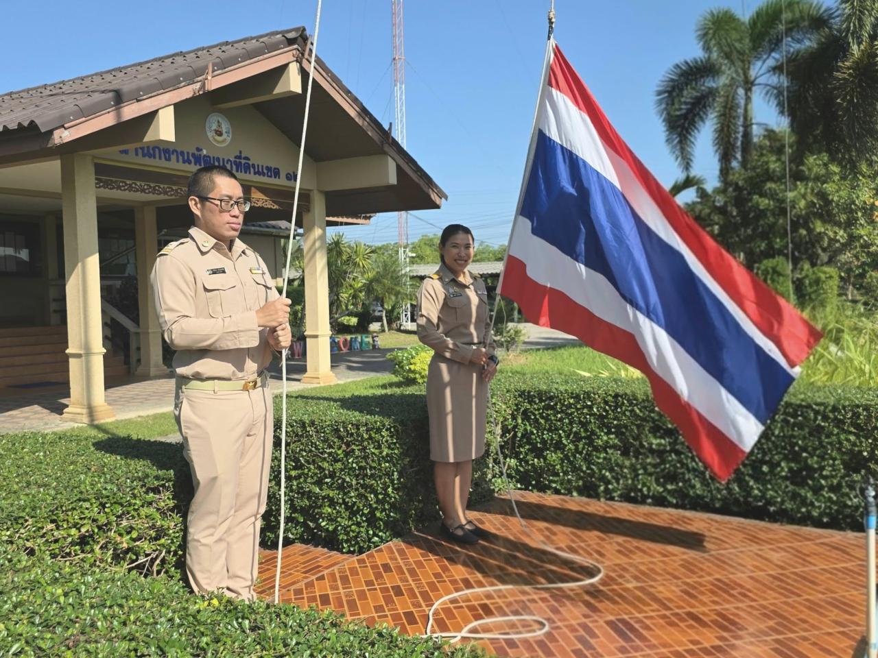 วันจันทร์ที่ 30 มิถุนายน 2568 นายนรา สุขไชย ผู้อำนวยการสำนักงานพัฒนาที่ดินเขต 12 นำข้าราชการและเจ้าหน้าที่ ร่วมกันเข้าแถวเคารพธงชาติ ร้องเพลงชาติไทย ซึ่งได้ปฏิบัติอย่างต่อเนื่องทุกเช้าวันจันทร์ เพื่อส่งเสริมคุณธรรม จริยธรรมในการปฏิบัติงานของเจ้าหน้าที่ แสดงออกถึงความจงรักภักดีต่อชาติ ศาสนา พระมหากษัตริย์ สร้างความสามัคคี มีความพร้อมเพรียง เป็นอันหนึ่งอันเดียวกัน