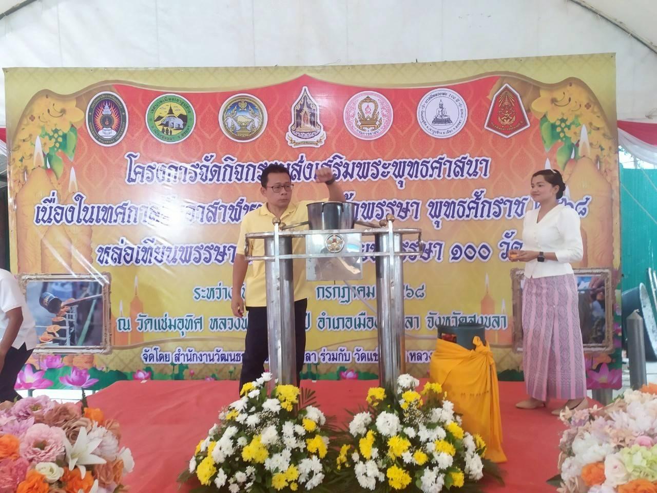 วันจันทร์ที่ 7 กรกฎาคม 2568 กลุ่มสำรวจเพื่อทำแผนที่ สำนักงานพัฒนาที่ดินเขต 12 เข้าร่วมกิจกรรมส่งเสริมพระพุทธศาสนาและกิจกรรมหล่อเทียนพรรษา เนื่องในเทศกาลวันอาสาฬหบูชาและเข้าพรรษา พุทธศักราช 2568 เพื่อส่งเสริมให้พุทธศาสนิกชนได้น้อมระลึกถึงคุณของพระรัตนตรัย และสืบสานพระพุทธศาสนา ณ วัดแช่มอุทิศ อำเภอเมืองสงขลา จังหวัดสงขลา
