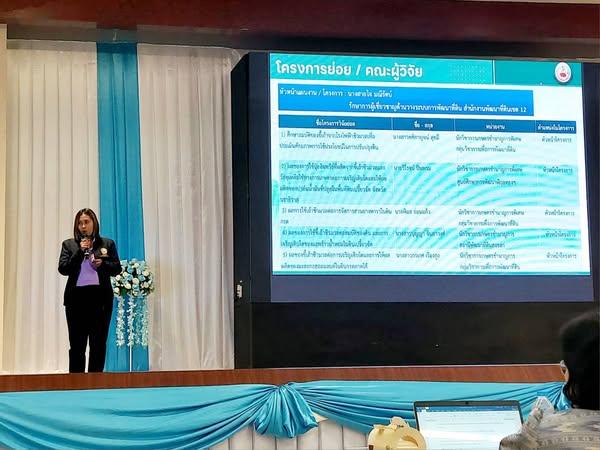 โดยนักวิจัย สพข.12 ได้ร่วมนำเสนอร่างข้อเสนอโครงการวิจัย ประกอบด้วย ชุดโครงการวิจัยของ สพข.12 แผนงานวิจัย "การศึกษาศักยภาพความเป็นใช้ประโยชน์ของขี้เถ้าจากโรงไฟฟ้าชีวมวลต่อภาคการเกษตรในพื้นที่ภาคใต้ตอนล่าง" โดยมีนางสายใจ มณีรัตน์ รักษาการผู้เชี่ยวชาญด้านวางระบบการพัฒนาที่ดิน เป็นหัวหน้าแผนงาน นำเสนอโดยนางสาวคศิกาญจน์ สุขมี นักวิชาการเกษตรชำนาญการพิเศษ กลุ่มวิชาการเพื่อการพัฒนาที่ดิน ซึ่งมี 5 โครงการย่อย ดังนี้