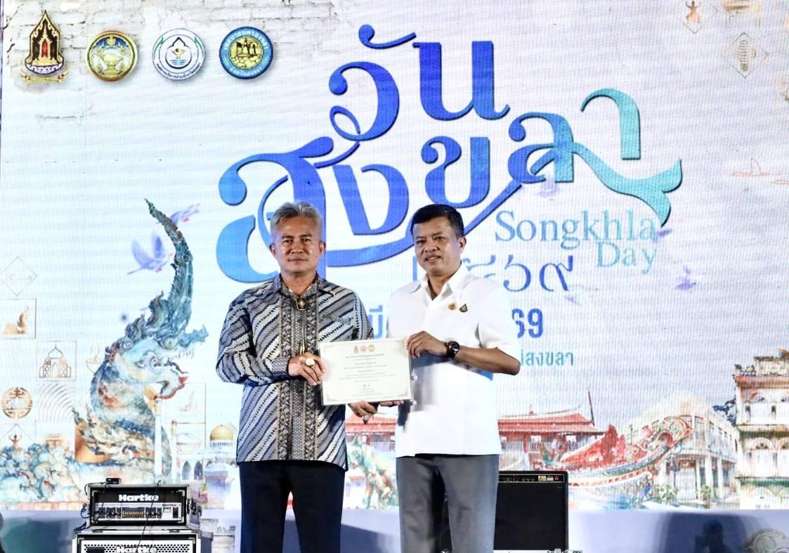วันจันทร์ ที่ 9 มีนาคม 2569 นายนรา สุขไชย ผู้อำนวยการสำนักงานพัฒนาที่ดินเขต 12 เข้าร่วมพิธีรับมอบเกียรติบัตรองค์กร และอำเภอคุณธรรมต้นแบบ ประจำปีงบประมาณ พ.ศ.2568 ภายในงานโครงการสืบสานอัตลักษณ์เมืองสงขลา (งานวันสงขลา) ประจำปี พ.ศ.2569 ณ บริเวณเวทีกลาง ลานหน้าพิพิธภัณฑสถานแห่งชาติสงขลา และถนนจะนะ ริมกำแพงเมืองสงขลา อำเภอเมืองสงขลา จังหวัดสงขลา