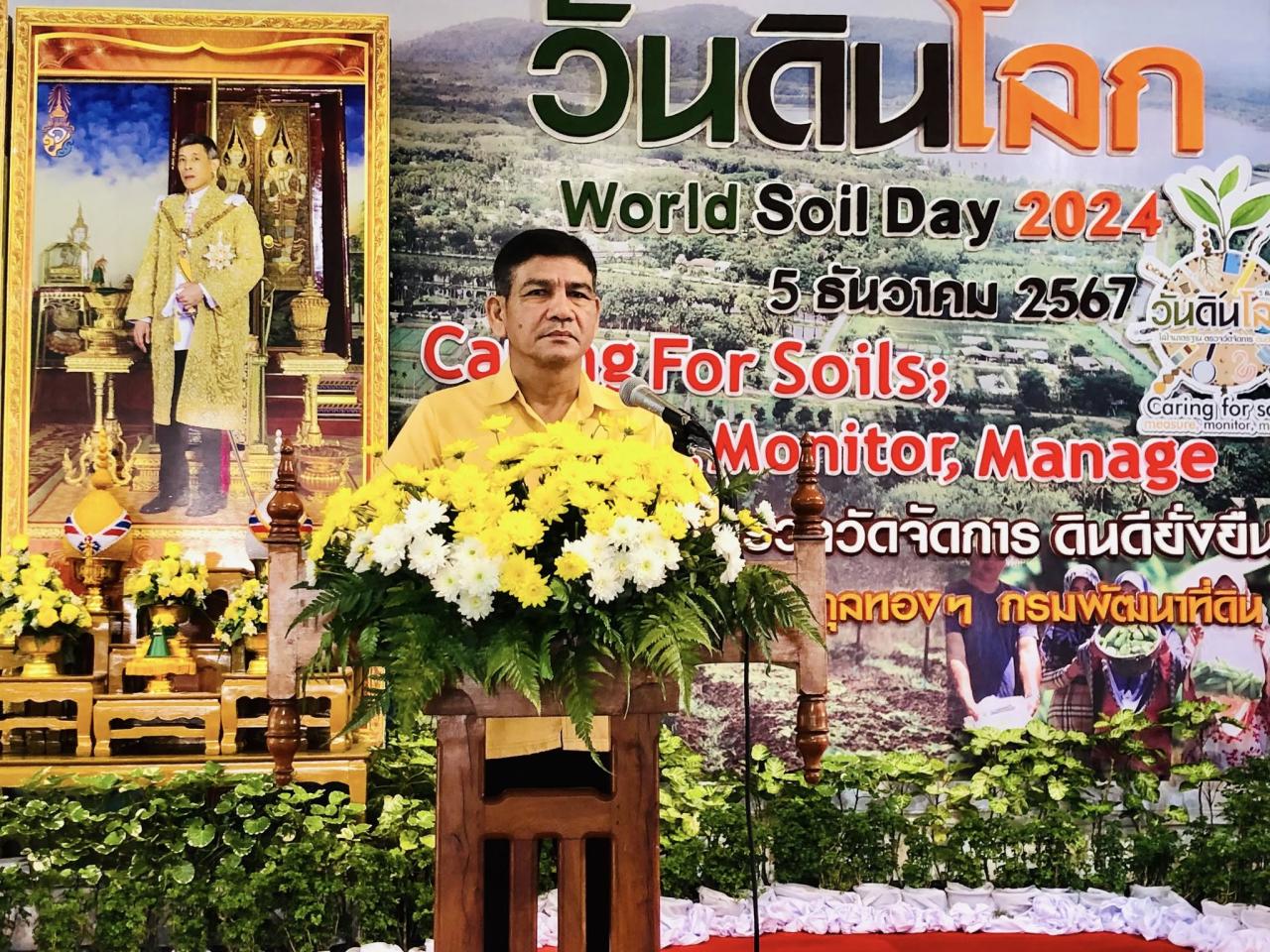 วันจันทร์ ที่ 23 ธันวาคม 2567 เวลา 9.30 น. นายสุชล แก้วเกาะสะบ้า ผู้อำนวยการสำนักงานพัฒนาที่ดินเขต 12 พร้อมข้าราชการและเจ้าหน้าที่ในสังกัด เข้าร่วมงานวันดินโลกปี 2567 ณ. ศูนย์ศึกษาการพัฒนาพิกุลทองอันเนื่องมาจากพระราชดำริ ตำบลกะลุวอเหนือ อำเภอเมือง จังหวัดนราธิวาส ภายใต้หัวข้อ “ใส่ใจมาตรฐาน ตรวจวัด จัดการ ดินดียั่งยืน : Caring for soils: measure, monitor, manage" พร้อมถวายความเคารพพระบรมฉายาลักษณ์ เปิดกรวยถวายราชสักการะ และร่วมร้องเพลงสรรเสริญพระบารมี เพื่อน้อมรำลึกถึงพระมหากรุณาธิคุณของพระบาทสมเด็จพระบรมชนกาธิเบศร มหาภูมิพลอดุลยเดชมหาราช บรมนาถบพิตร รัชกาลที่ 9 และเฉลิมพระเกียรติพระบาทสมเด็จพระเจ้าอยู่หัว ที่ทรงสืบสาน รักษา ต่อยอดพระราชปณิธานแห่งพระบรมราชนกนาถ เกี่ยวกับพระราชกรณียกิจด้านการอนุรักษ์ทรัพยากรดินและการพัฒนาที่ดินอย่างต่อเนื่อง และเพื่อรณรงค์สร้างความตระหนักรู้ถึงความสำคัญของดินและปกป้องรักษาดินให้มีความอุดมสมบูรณ์ โดยมีนายสุชล แก้วเกาะสะบ้า ผู้อำนวยการสำนักงานพัฒนาที่ดินเขต 12 ให้เกียรติเป็นประธานในพิธีเปิด และมีการกล่าวรายงานโดยนางสายหยุด เพ็ชรสุข ผู้อำนวยการศูนย์ศึกษาการพัฒนาพิกุลทองฯ