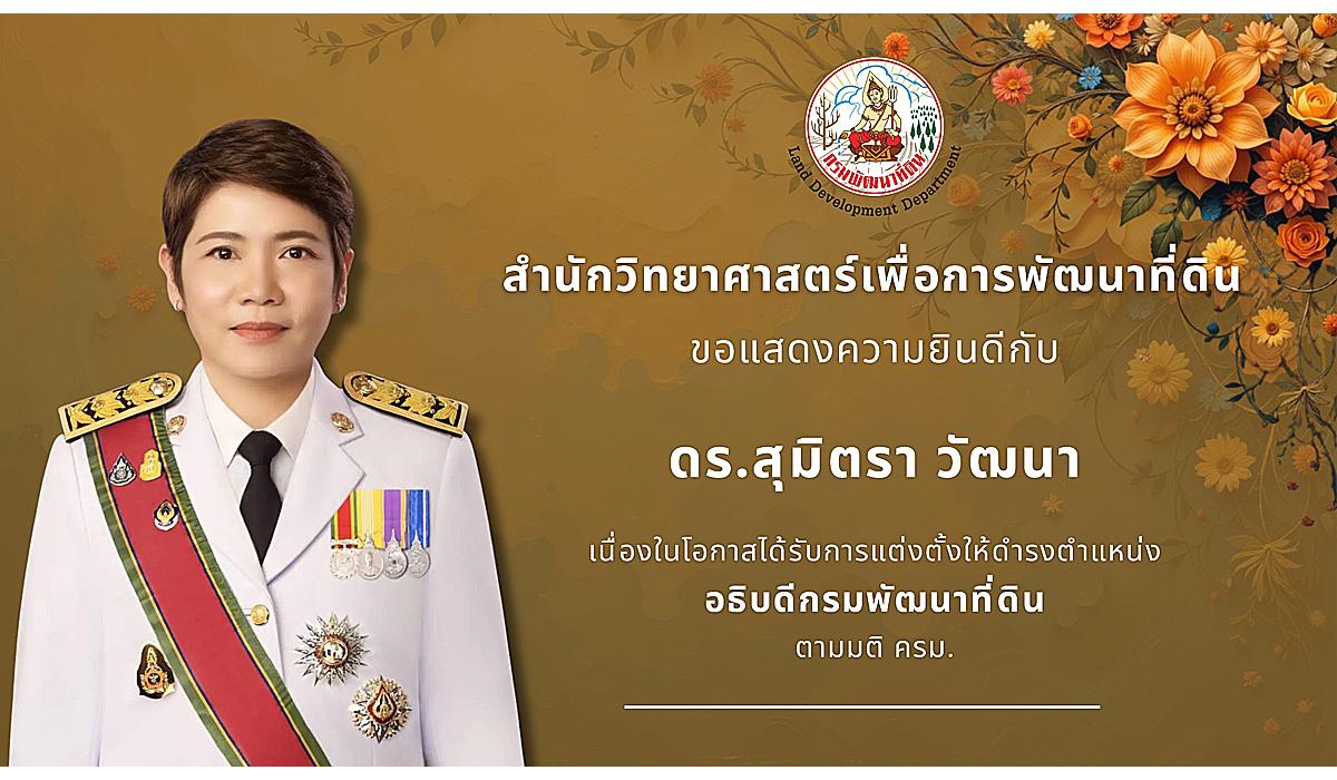 สำนักวิทยาศาสตร์เพื่อการพัฒนาที่ดิน ขอแสดงความยินดีอย่างยิ่งกับ ดร.สุมิตรา วัฒนา ในโอกาสที่ คณะรัฐมนตรีมีมติแต่งตั้งให้ดำรง ตำแหน่ง“อธิบดีกรมพัฒนาที่ดิน กระทรวงเกษตรและสหกรณ์”เมื่อวันที่ 7 ตุลาคม 2568