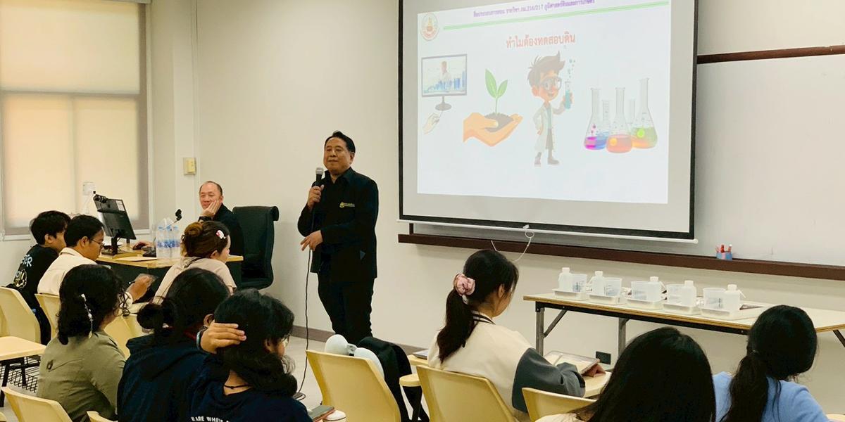 ผู้อำนวยการสำนักวิทยาศาสตร์เพื่อการพัฒนาที่ดิน ได้มอบหมายให้ นายสุรเชษฐ์ นาราภัทร์ ผู้อำนวยการกลุ่มวิจัยสิ่งแวดล้อมดิน พร้อมด้วยทีมงาน ได้แก่ นายชัยสิทธิ์ วัฒนาวังจงสุข นักวิทยาศาสตร์ปฏิบัติการ นางสาวลักขณา ด้วงสุด นักวิทยาศาสตร์ และนายวิเชียร เสือโรจน์ พนักงานจ้างเหมา บรรยายพิเศษเรื่อง การทดสอบดิน ให้แก่นักศึกษาสาขาภูมิศาสตร์ คณะศิลปศาสตร์ มหาวิทยาลัยธรรมศาสตร์ ศูนย์รังสิต ณ ห้อง SC 1043 อาคารเรียนรวมสังคมศาสตร์ ในวันอังคารที่ 10 กุมภาพันธ์ 2569 เวลา 13.30-16.00 น. โดยการบรรยายดังกล่าว เป็นหัวข้อหนึ่งในรายวิชา ภม.216/217 ภูมิศาสตร์ดินและการเกษตร ซึ่งเป็นวิชาเลือกสำหรับนักศึกษาสาขาภูมิศาสตร์หรือสาขาอื่นที่สนใจลงทะเบียนเรียน โดยมีรองศาสตราจารย์ ดร.ทรงชัย ทองปาน เป็นอาจารย์ที่ปรึกษารายวิชา