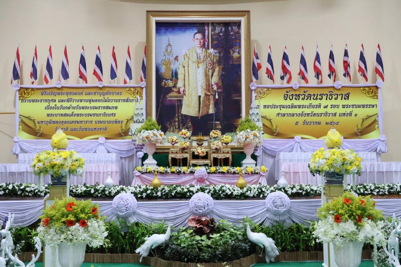 สพด.นราธิวาส ร่วมพิธีเจริญพระพุทธมนต์ ทำบุญตักบาตร และพิธีวางพานพุ่มดอกไม้ถวายราชสักการะ ถวายพระราชกุศล เนื่องในวันคล้ายวันพระบรมราชสมภพพระบาทสมเด็จพระบรมชนกาธิเบศร มหาภูมิพลอดุลยเดชมหาราช บรมนาถบพิตร วันชาติ และ วันพ่อแห่งชาติ ๕ ธันวาคม ๒๕๖๘