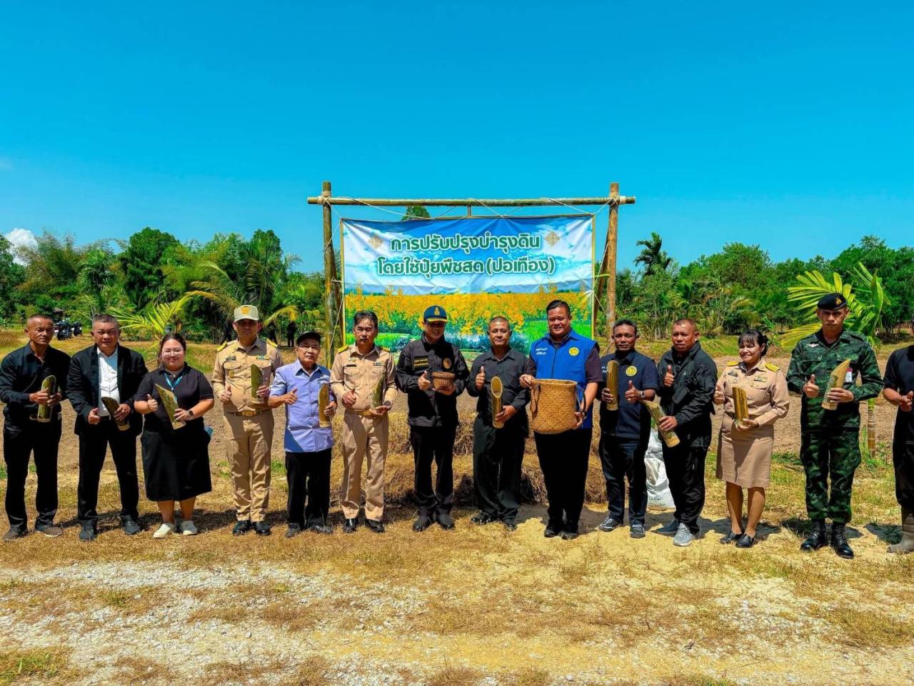 ในโอกาสนี้ ผู้ว่าราชการจังหวัดนราธิวาส และคณะ ได้ร่วมกิจกรรมหว่านเมล็ดพันธุ์ปอเทืองเพื่อปรับปรุงบำรุงดินก่อนการเพาะปลูกต่อไป