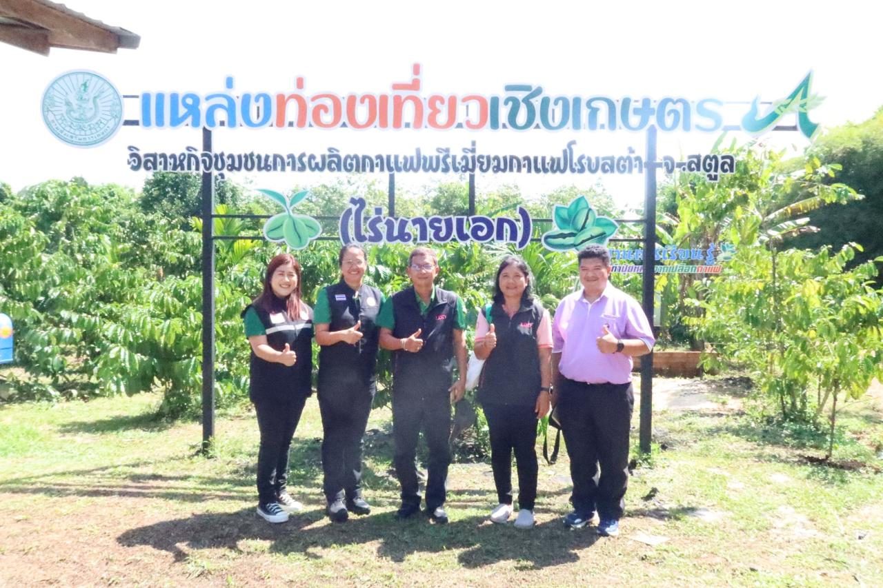 ณ วิสาหกิจชุมชนกาแฟพรีเมี่ยมการแฟโรบัสต้า จังหวัดสตูล (ไร่กาแฟนายเอก) บ้านทุ่งนางแก้ว ตำบลน้ำผุด อำเภอละงู