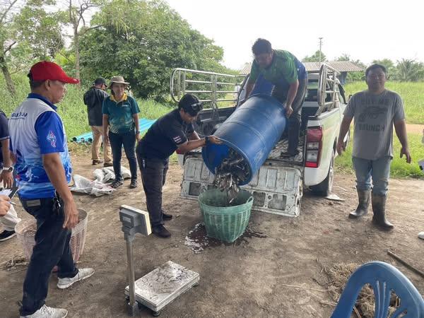 วันที่ 12 มิถุนายน 2568 นายวีระพจน์ เรืองมี ผู้อำนวยการสถานีพัฒนาที่ดินสงขลา มอบหมายให้นางสาวรัตนา แก้วประดับเพชร นักวิชาการเกษตรปฏิบัติการ พร้อมด้วยเจ้าหน้าที่ ร่วมกับสำนักงานประมงอำเภอระโนด ลงพื้นที่ผลิตน้ำหมักชีวภาพจากผลิตภัณฑ์จุลินทรีย์สารเร่งซุปเปอร์ พด.2 ผลิตน้ำหมักชีวภาพจากปลาหมอคางดำ จำนวน 195 กิโลกรัม เพื่อควบคุมและกำจัดปลาหมอคางดำฟื้นฟูและรักษาความหลากหลายทางระบบนิเวศ ปกป้องชนิดพันธุ์สัตว์น้ำพื้นเมือง เฝ้าระวังและป้องกันการแพร่ระบาดในพื้นที่ใหม่ พื้นที่อำเภอกระแสสินธุ์ จังหวัดสงขลา