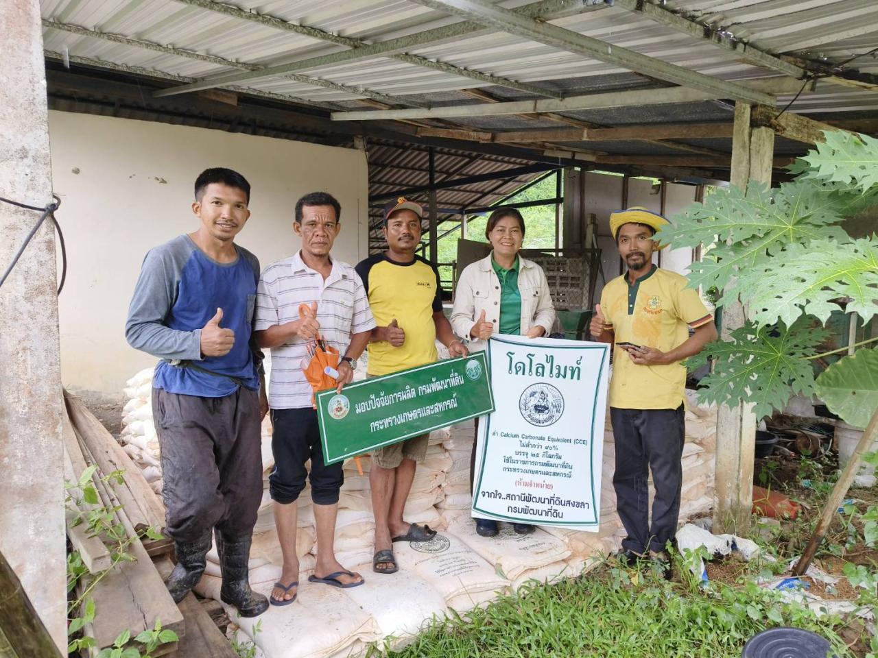 นายวีระพจน์ เรืองมี ผู้อำนวยการสถานีพัฒนาที่ดินสงขลา มอบหมายให้ นางอารีย์ สวนแก้ว นักวิชาการเกษตรชำนาญการ ลงพื้นที่เพื่อสนับสนุนปัจจัยการผลิต ในการปรับสภาพดินเป็นกรด (โดโลไมท์) เพื่อแก้ปัญหาสภาพดิน ช่วยลดค่าความเป็นกรด ณ บ้านถ้ำตลอด หมู่ที่ 6 ตำบลเขาแดงอำเภอสะบ้าย้อย จังหวัดสงขลา