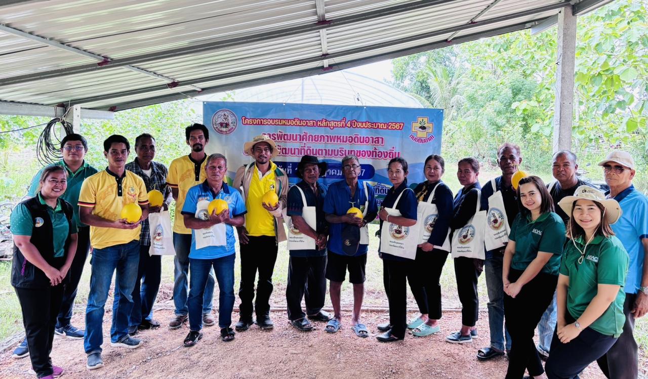 นายวีระพจน์ เรืองมี ผู้อำนวยการสถานีพัฒนาที่ดินสงขลา มอบหมายให้ นางสาวกรเกศ เรืองกูล นักวิชาการเกษตรชำนาญการ พร้อมด้วยเจ้าหน้าที่สถานีพัฒนาที่ดินสงขลา ลงพื้นที่ฝึกอบรมโครงการอบรมหมอดินอาสา 4.0 ประจำปีงบประมาณ 2567 หลักสูตร 4 การพัฒนาศักยภาพของหมอดินอาสาด้านการพัฒนาที่ดินตามบริบทท้องถิ่น ณ ศูนย์ถ่ายทอดเทคโนโลยีด้านการพัฒนาที่ดิน หมู่ที่ 7 ตำบลจะทิ้งพระ อำเภอสทิงพระ จังหวัดสงขลา