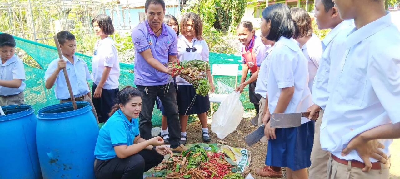 วันพุธ ที่ 19 กุมภาพันธ์ พ.ศ. 2568 เจ้าหน้าที่สถานีพัฒนาที่ดินภูเก็ต ลงพื้นที่สนับสนุนปัจจัยในการผลิต น้ำหมักชีวภาพ พด.2 , พด.7 ให้แก่นักเรียนในโรงเรียน พร้อมถ่ายทอดองค์ความรู้พื้นฐานด้านการพัฒนาที่ดินโดยใช้เทคโนโลยีชีวภาพของกรมพัฒนาที่ดินให้แก่นักเรียนในโรงเรียน ปลูกจิตสำนึกการเรียนรู้ให้แก่เยาวชน ให้มีความรู้พื้นฐานในการทำการเกษตรได้อย่างถูกต้อง และนักเรียนที่เข้าร่วมโครงการสามารถถ่ายทอดความรู้ไปสู่ผู้ปกครอง เพื่อนนักเรียน และเกษตรกรทั่วไป สามารถทำการเกษตรที่ปลอดภัยและเป็นมิตรกับสิ่งแวดล้อม ณ โรงเรียนบ้านทุ่งคาบุญยขจรประชาอาสาหมู่ 5 ตำบลรัษฎา อำเภอเมืองภูเก็ต จังหวัดภูเก็ต
