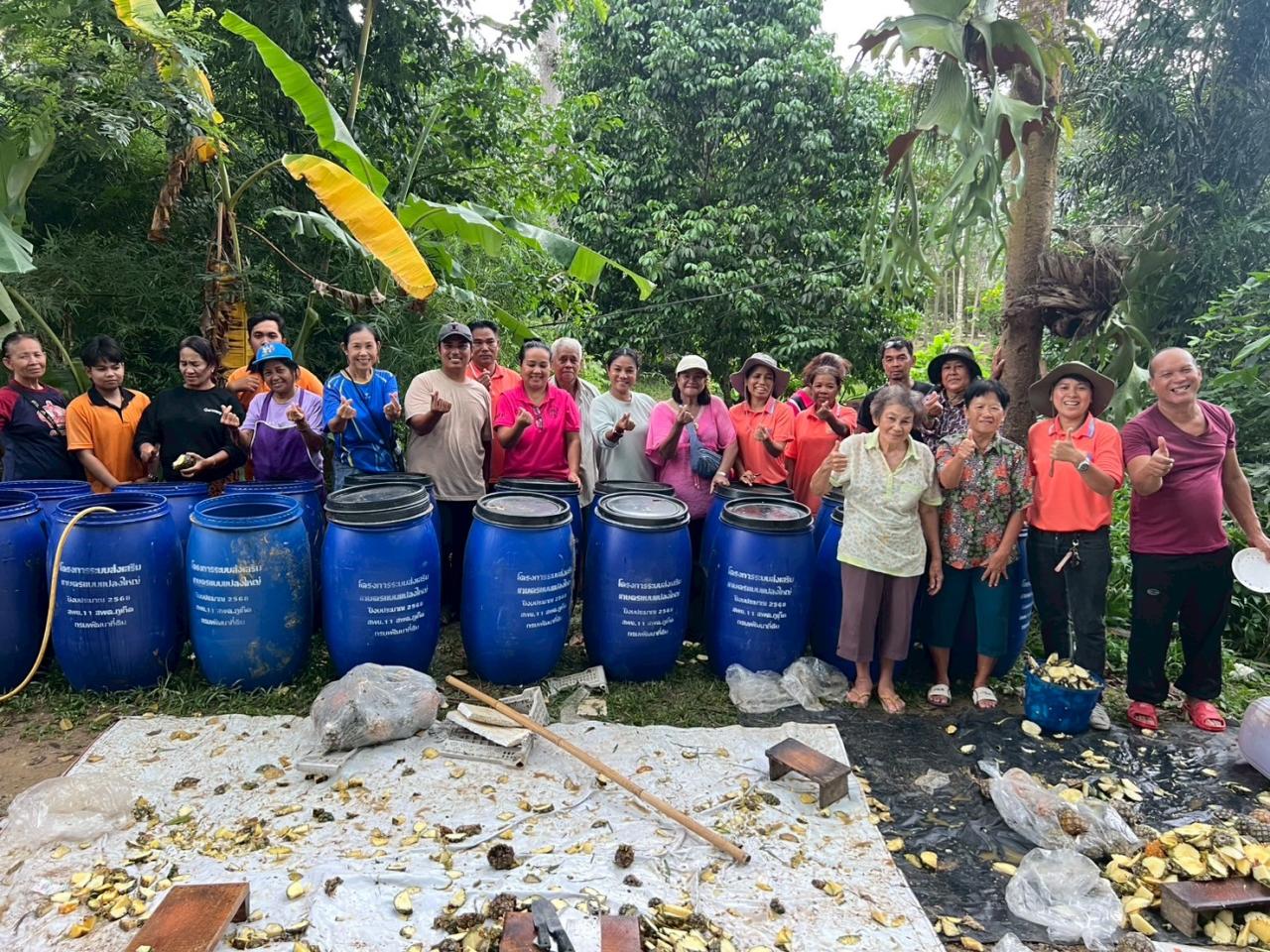 วันอังคาร ที่ 27 พฤษภาคม 2568 นายทรงวุฒิ แสงสุริยะ ผู้อำนวยการสถานีพัฒนาที่ดินภูเก็ต มอบหมายให้นางสาวเพชรา วรรณเพชร นักวิชาการเกษตรชำนาญการ นางสาวนาฏกมล แก้วพิชัย นักวิชาการเกษตรปฏิบัติการ นายพิทยา รอดอุ่น นักวิชาการเกษตร พร้อมด้วยเจ้าหน้าที่สถานี ดำเนินการสาธิตและอบรมให้ความรู้เรื่องการผลิตและการใช้น้ำหมักชีวภาพ พร้อมสนับสนุนปัจจัยการผลิตน้ำหมักชีวภาพจากสารเร่ง พด.2 จำนวน 2,200 ลิตร เพื่อให้เกษตรกรนำไปใช้เพื่อให้เกษตรกรใช้ในการปรับปรุงดินและลดต้นทุนการผลิต เพื่อการใช้ที่ดินอย่างยั่งยืนต่อไป