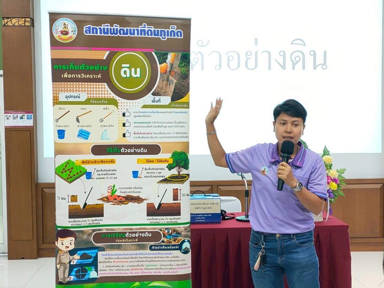 วันพุธ ที่ 16 กรกฎาคม พ.ศ. 2568 นายทรงวุฒิ แสงสุริยะ ผู้อำนวยการสถานีพัฒนาที่ดินภูเก็ต มอบหมายให้นางสาวเพชรา วรรณเพชร นักวิชาการเกษตรชำนาญการ พร้อมด้วย นางสาวนาฏกมล แก้วพิชัย นางสาวจารุภา สุขอุ่น นางสาวฐิตาภา จอมเลิศ นักวิชาการเกษตรปฏิบัติการ และนายพิทยา รอดอุ่น นักวิชาการเกษตร ร่วมเป็นวิทยากรถ่ายทอดความรู้ เรื่อง ความสำคัญของการตรวจวิเคราะห์ดินในแปลงสับปะรด ในโครงการทดสอบและถ่ายทอดเทคโนโลยีเพื่อเพิ่มผลิตภาพการผลิตสินค้าเกษตรแก่เกษตรกรที่เข้าร่วมโครงการ ณ ห้องประชุมร้านคุณแม่จู้ หมู่ที่ 5 ตำบลเทพกระษัตรี อำเภอถลาง จังหวัดภูเก็ต